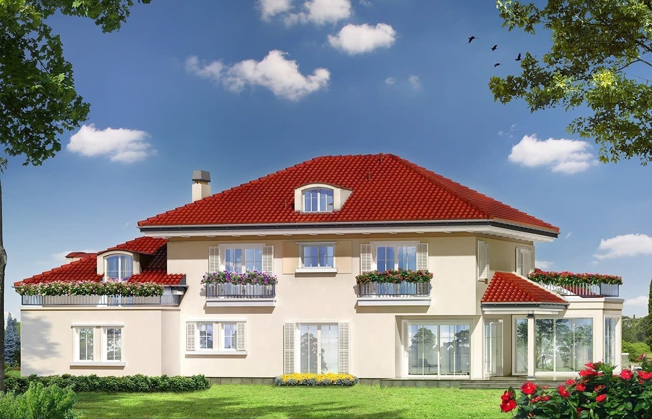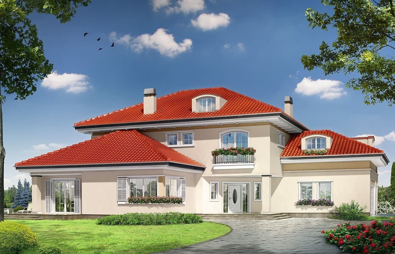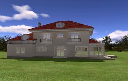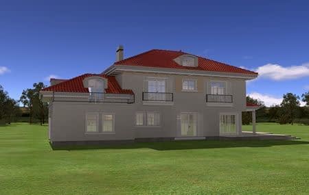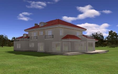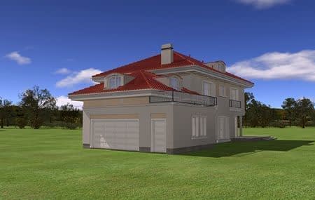 Projekt domu Malibu to wspaniała podmiejska rezydencja na ładną działkę. Budynek urzeka pięknymi otwarciami pomieszczeń na ogród, oraz bardzo reprezentacyjnym wejściem. Piętrowy dom, zaprojektowano łącząc ze sobą trzy bryły: dwukondygnacyjną główną bryłę budynku, oraz dwie parterowe z poddaszami - garażową i kryjącą kuchnię i jadalnię. Wejście ze ściętego narożnika, przez podcień stanowi złamanie formy typowego wejścia do rezydencji. Inspiracją przy projektowaniu domu Malibu były wzory śródziemnomorskich, włoskich czy francuskich willi, co zdecydowanie wyróżnia go spośród architektury polskiej tradycji dworkowej. Złamanie zasady symetrii bryły i wnętrza dało wolność w kształtowaniu funkcji poszczególnych pomieszczeń. Dom Malibu, jak na rezydencję w południowym stylu przystało otoczony jest tarasami, podcieniami, dużymi przeszkleniami, łączącymi wnętrze z otaczającym ogrodem. Dodatkowym urozmaiceniem są balkony i tarasy na piętrze. Wnętrze domu to: otwarta jednoprzestrzenna część dzienna, z salonem, jadalnią, pięknie przeszkloną oranżerią, reprezentacyjnym holem i częściowo otwartą kuchnią. Dodatkowo na parterze zaplanowano pokój - gabinet, oraz garaż i pomieszczenia techniczne. Na piętrze mieszczą się cztery sypialnie z garderobami i dwiema łazienkami, oraz pralnia, pokój rekreacyjny nad garażem, oraz osobne schody na strych nad piętrem, gdzie można zaaranżować duży pokój - studio, lub pozostawić strych. Budynek jest duży, reprezentacyjny, ale zaprojektowano go bez niepotrzebnej rozrzutności, z dbałością o funkcjonalność każdego fragmentu wnętrza. Pracownia posiada projekt domu Malibu w odbiciu lustrzanym.
