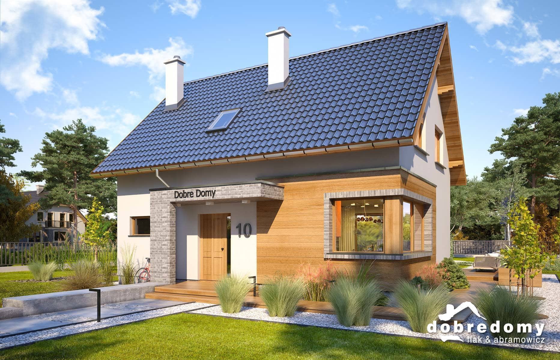 Dom parterowy z poddaszem użytkowym, dla 4-5-osobowej rodziny. Na parterze znajdują się pokój dzienny, połączony przestrzennie z kuchnią, osobne wc, dodatkowy pokoj oraz pom. gosp. Na poddaszu zlokalizowano trzy sypialnie i ogólnodostępną łazienkę.
