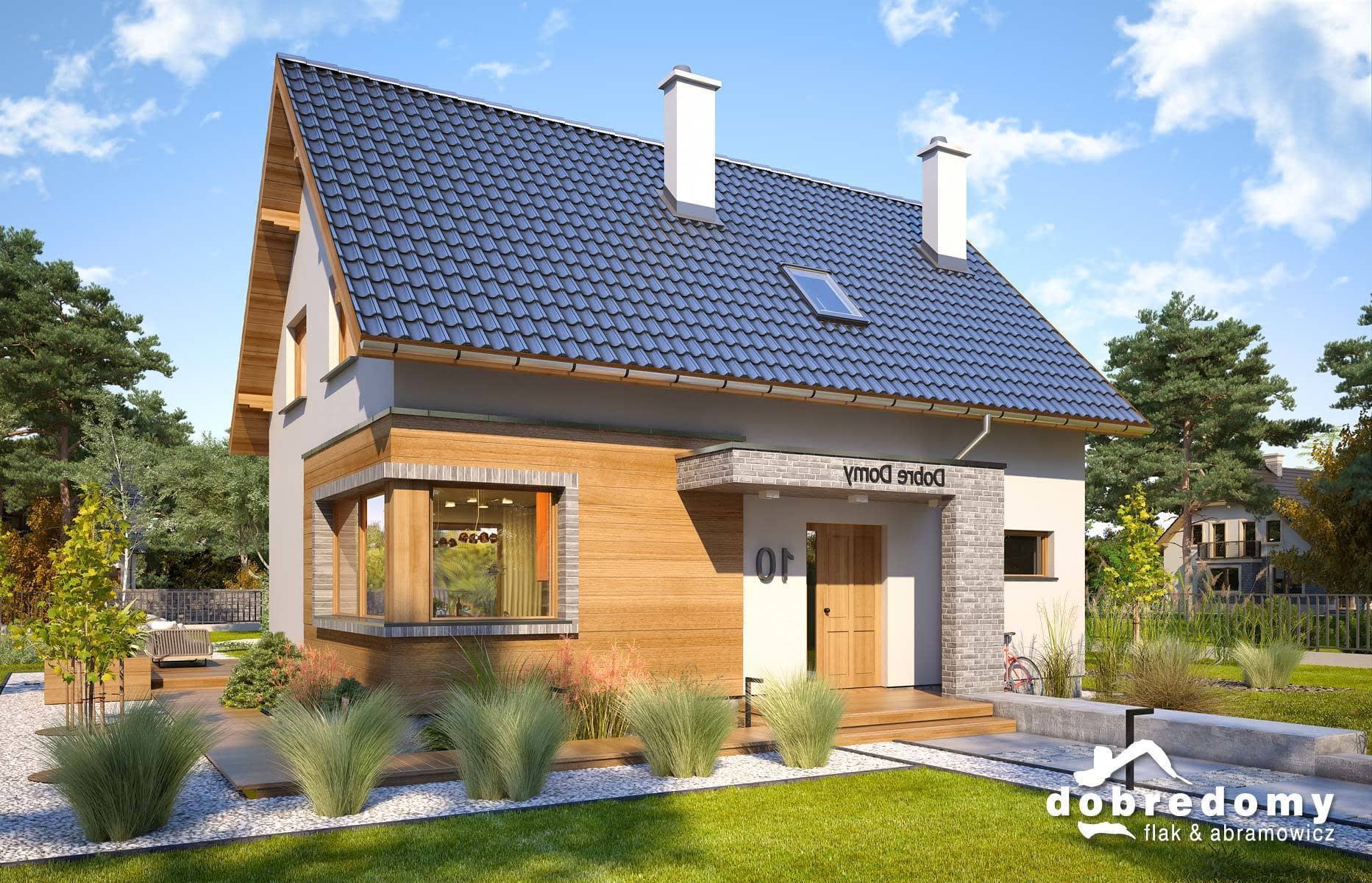 Elewacje pokryte tynkiem strukturalnym w systemie ociepleń Termo Organika oraz okładziną drewnianą i kamienną. W projekcie zastosowano okna dachowe marki FAKRO. Pokrycie dachu - dachówka ceramiczna lub cementowa CREATON.