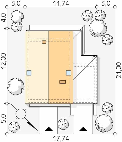 - Minimalne wymiary działki21 x 17.74m