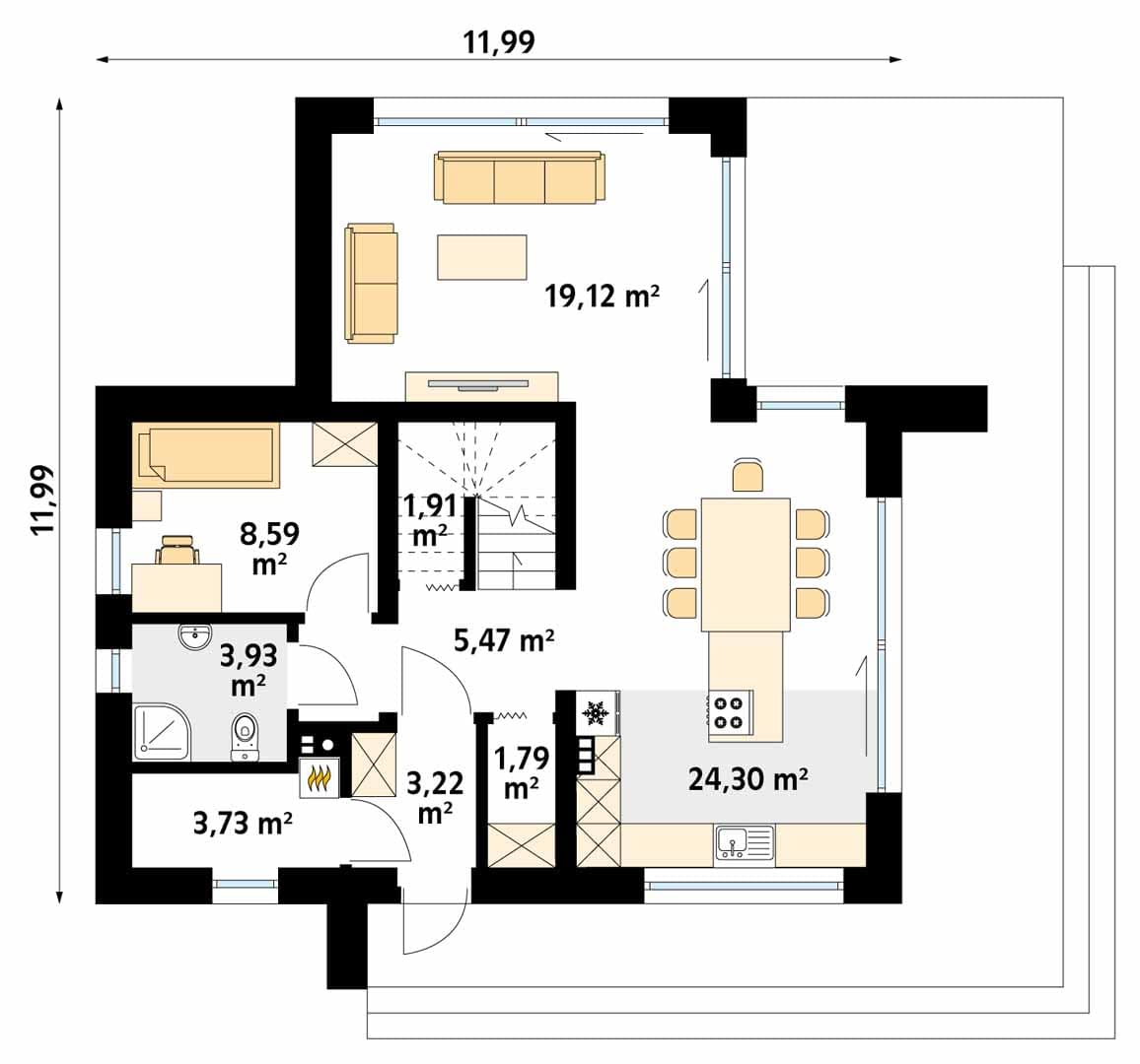 - Szerokość domu11.99 m