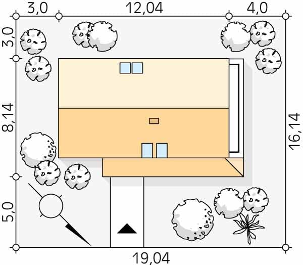- Minimalne wymiary działki16.14 x 19.04m