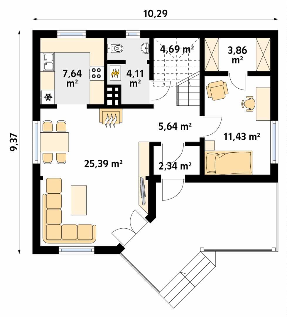 Dom mieszkalny, jednorodzinny, przeznaczony dla 4-osobowej rodziny. Na parterze zaprojektowano część dzienną wraz z pokojem gościnnym. Na poddaszu znajdują się trzy sypialnie z garderobami.Konstrukcja