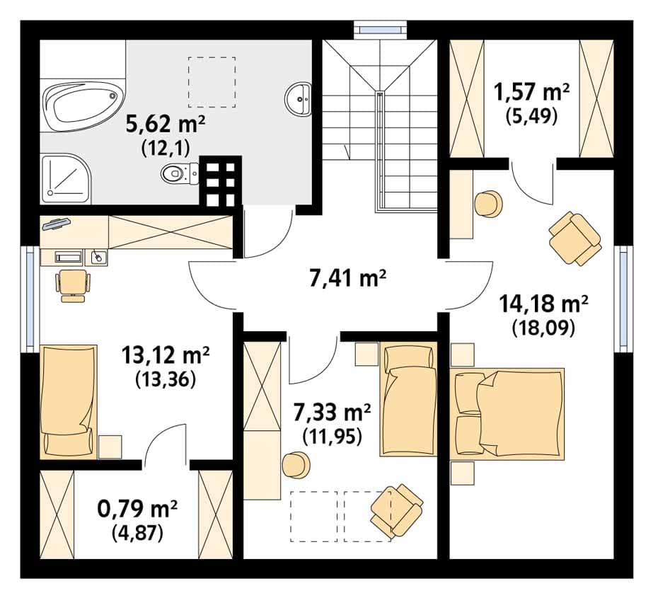 - rzuty poziome poszczególnych kondygnacji (parter, poddasze lub piętro),
