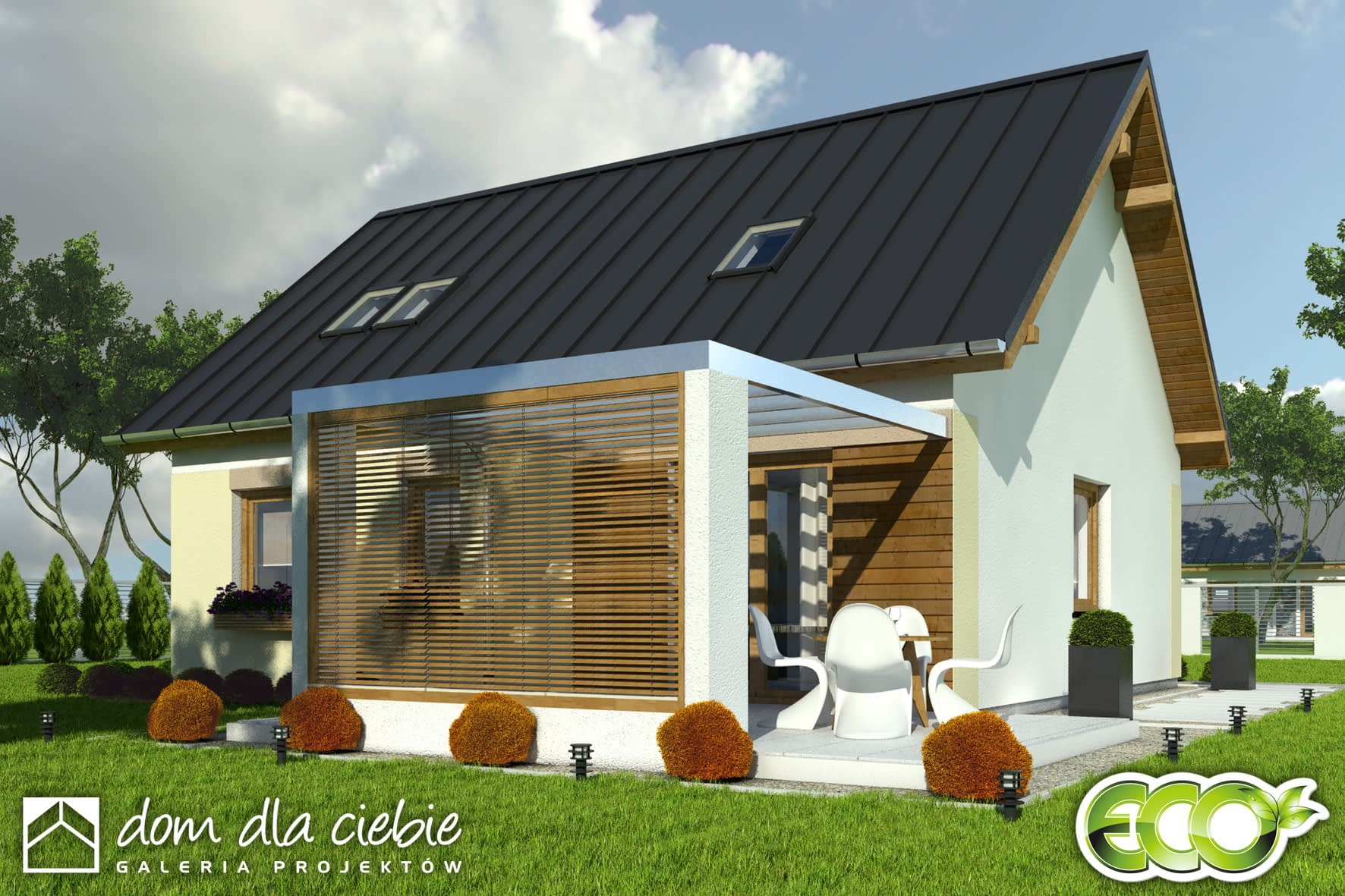 elewacje: tynk strukturalny, okładzina drewniana