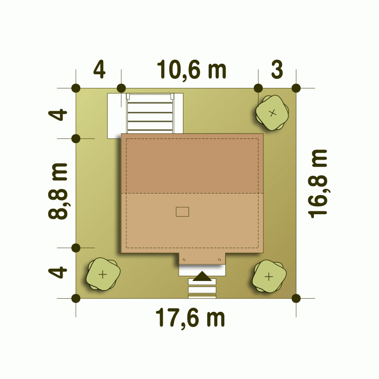 - Minimalne wymiary działki16.8 x 17.6m