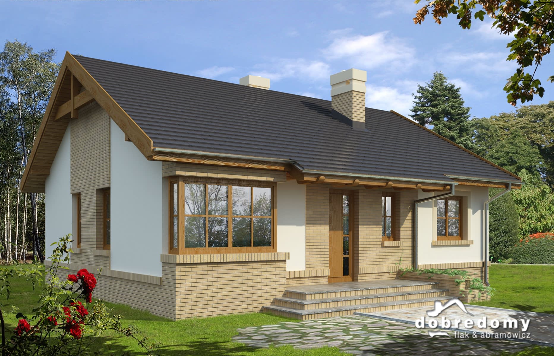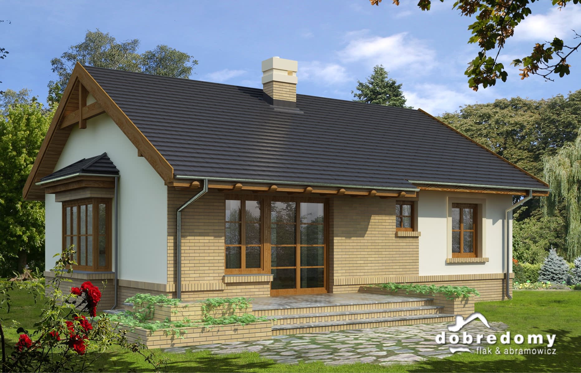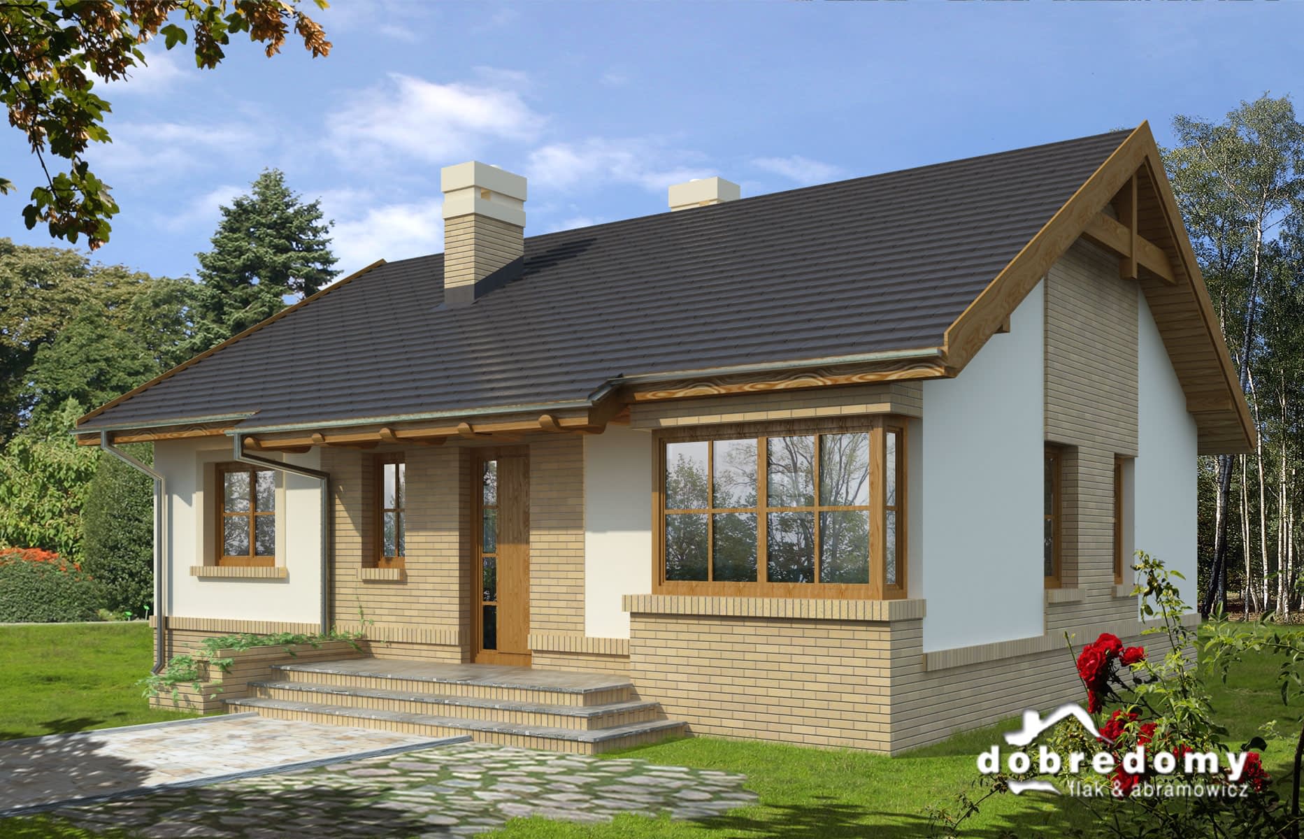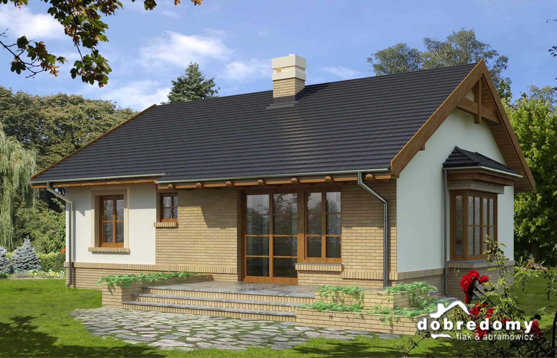 Dom parterowy, przeznaczony dla 3-4-osobowej rodziny. Układ pomieszczeń podzielono na część ogólną i prywatną. W części ogólnej znajduje się wiatrołap z przejściem przez hall do otwartej przestrzeni salonu z jadalnią i kuchnią. Z kuchni dostępne jest pomieszczenie gospodarcze. Możliwe jest również zamknięcie kuchni. Część prywatna składa się z korytarza i dostępnej z niego łazienki oraz dwóch sypialni.