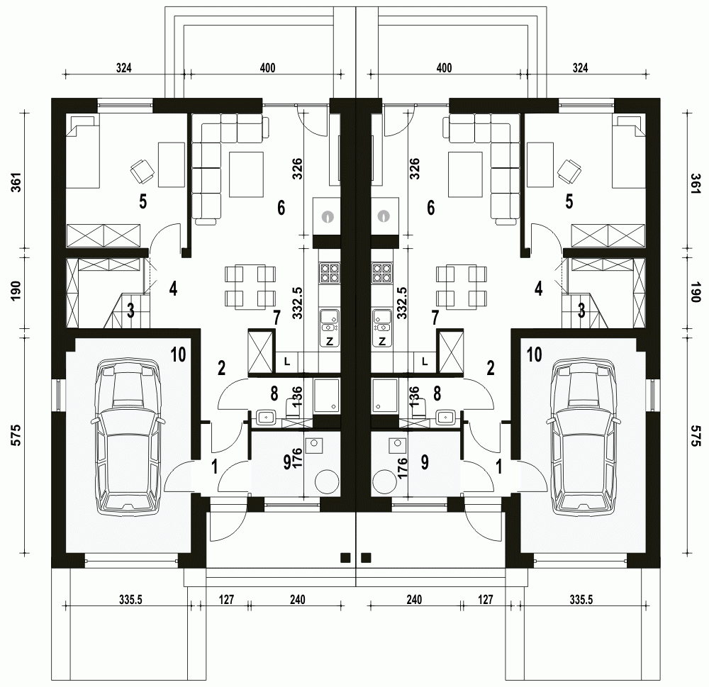 (Uwaga: projekty typu bliźniak oferujemy jako domy dwulokalowe, projekt można zamówić również w zabudowie bliźniaczej)Opis dotyczy jednego segmentu:Propozycja Mazurek to niewielki, komfortowy dom z garażem na jedno auto. Projekt poprzez prostą konstrukcję i zwartą bryłę stawia na ekonomię zarówno podczas budowy jak i w eksploatacji. Mazurek dedykowany jest dla 4-5 osobowej rodziny. Parter budynku to salon połączony z kuchnią i jadalnią, pokój mogący pełnić rolę gabinetu lub pokoju gościnnego, nieduża łazienka, pomieszczenie techniczne z piecem. Pod schodami prowadzącymi na piętro wygospodarowano miejsce na spiżarnię albo garderobę. Piętro to 3 sypialnie, łazienka z miejscem na pralkę. Projekt przewidziany jest do zabudowy wolnostojącej, bliźniaczej oraz szeregowej.