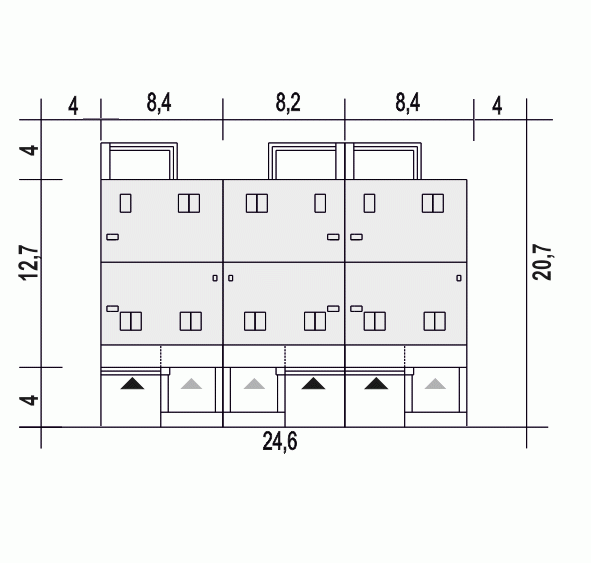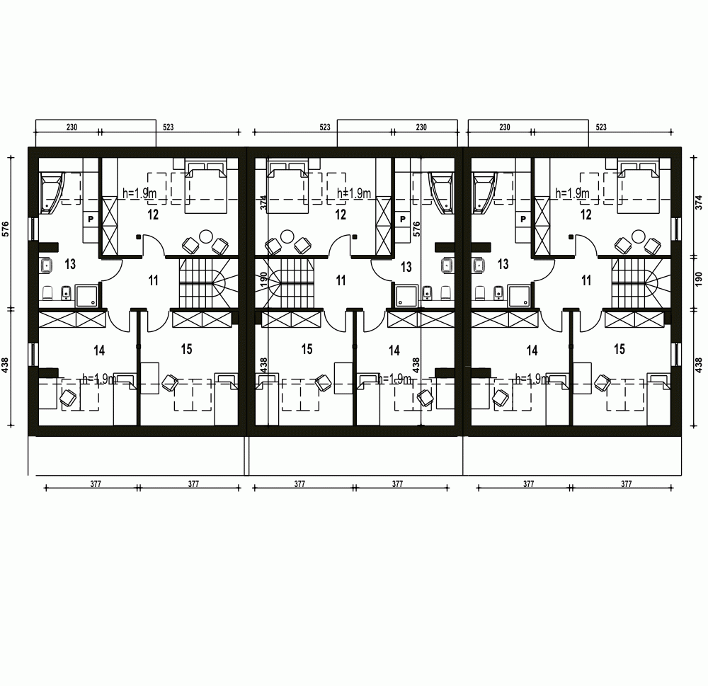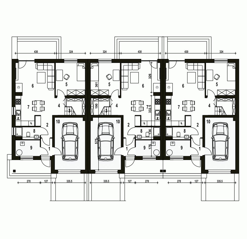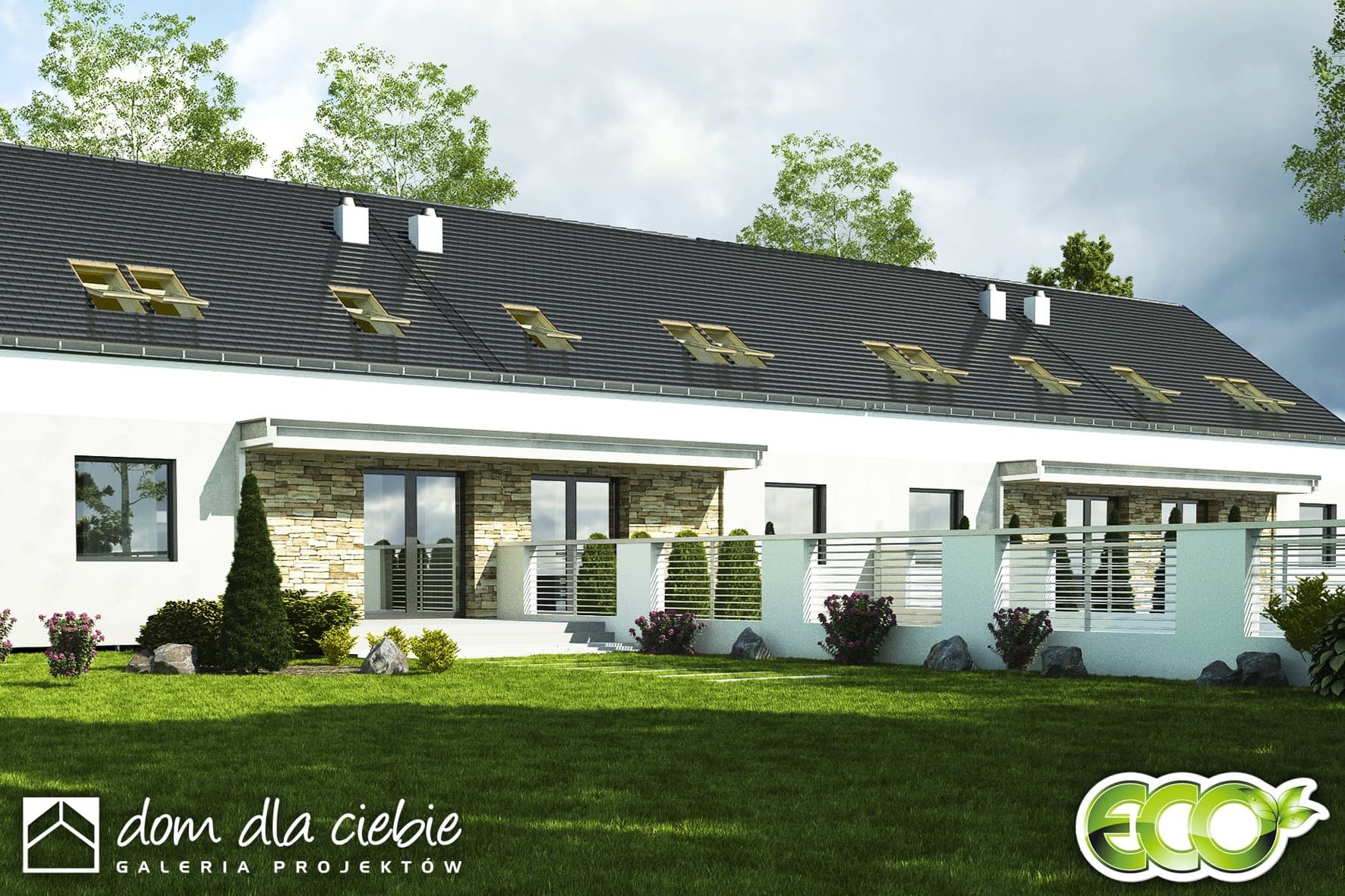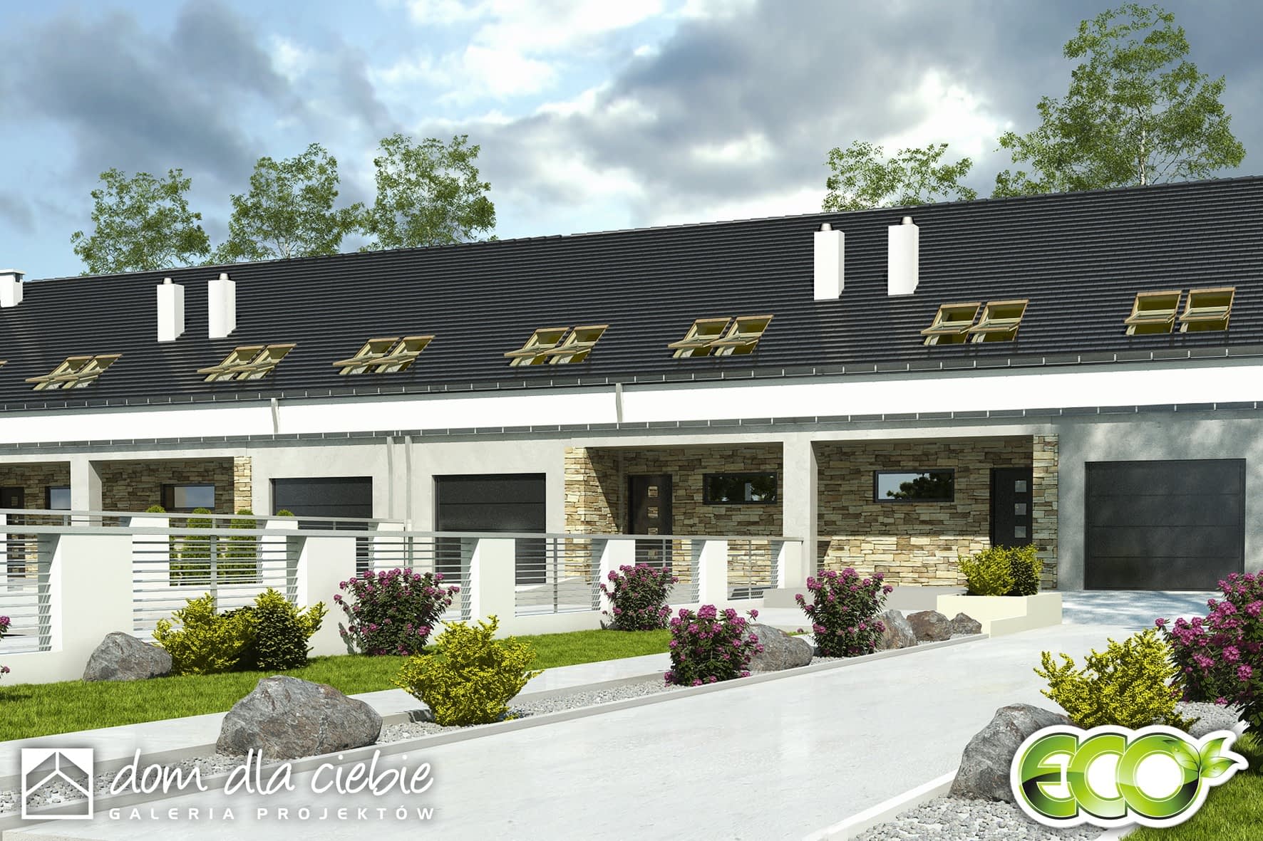 Opis dotyczy jednego segmentu:Propozycja Mazurek II to niewielki, komfortowy dom z garażem na jedno auto. Projekt poprzez prostą konstrukcję i zwartą bryłę stawia na ekonomię zarówno podczas budowy jak i w eksploatacji. Mazurek II dedykowany jest dla 4-5 osobowej rodziny. Parter budynku to salon połączony z kuchnią i jadalnią, pokój mogący pełnić rolę gabinetu lub pokoju gościnnego, nieduża łazienka, pomieszczenie techniczne z piecem. Pod schodami prowadzącymi na piętro wygospodarowano miejsce na spiżarnię albo garderobę. Piętro to 3 sypialnie, łazienka z miejscem na pralkę. Projekt przewidziany jest do zabudowy wolnostojącej, bliźniaczej oraz szeregowej.