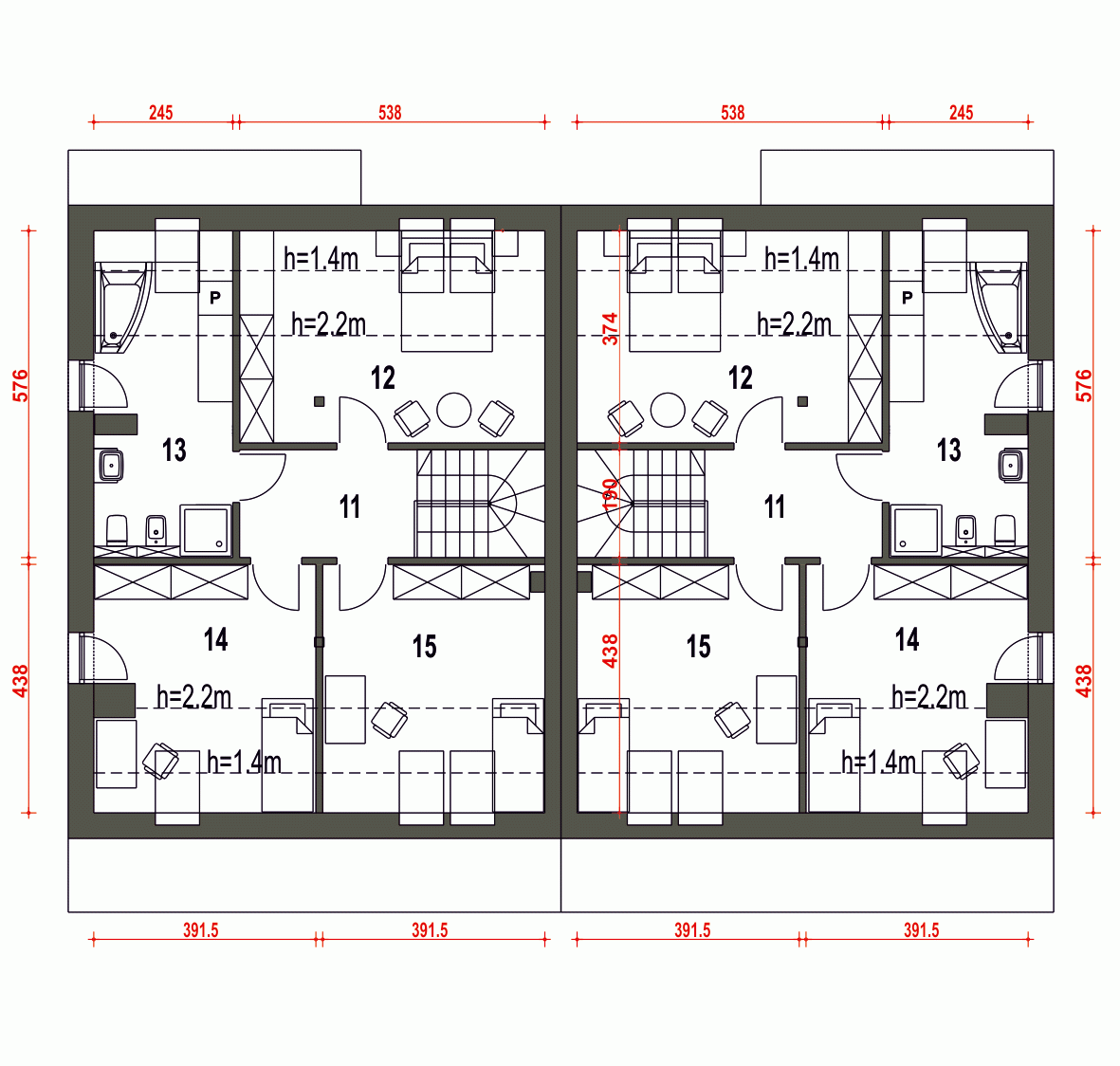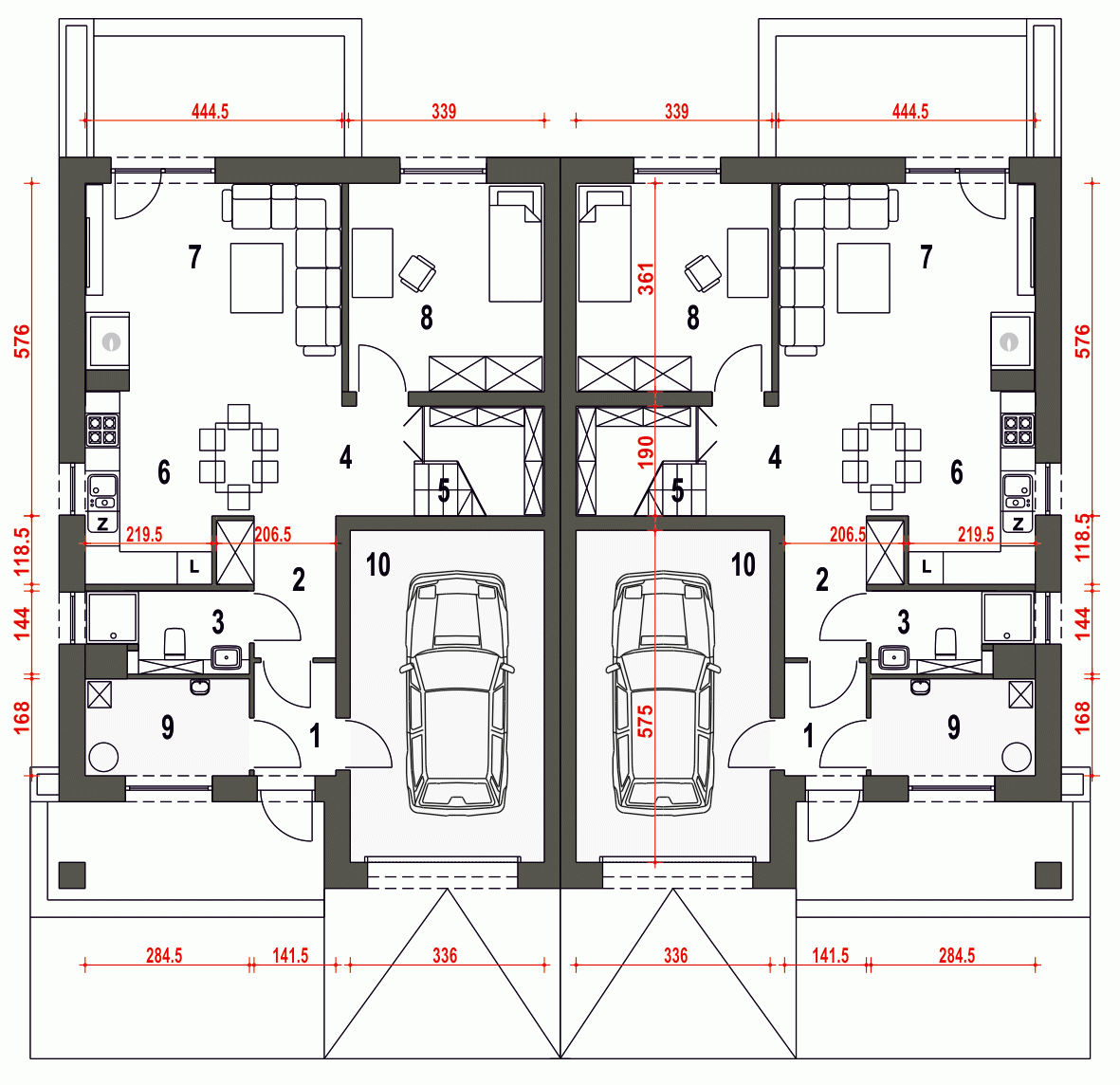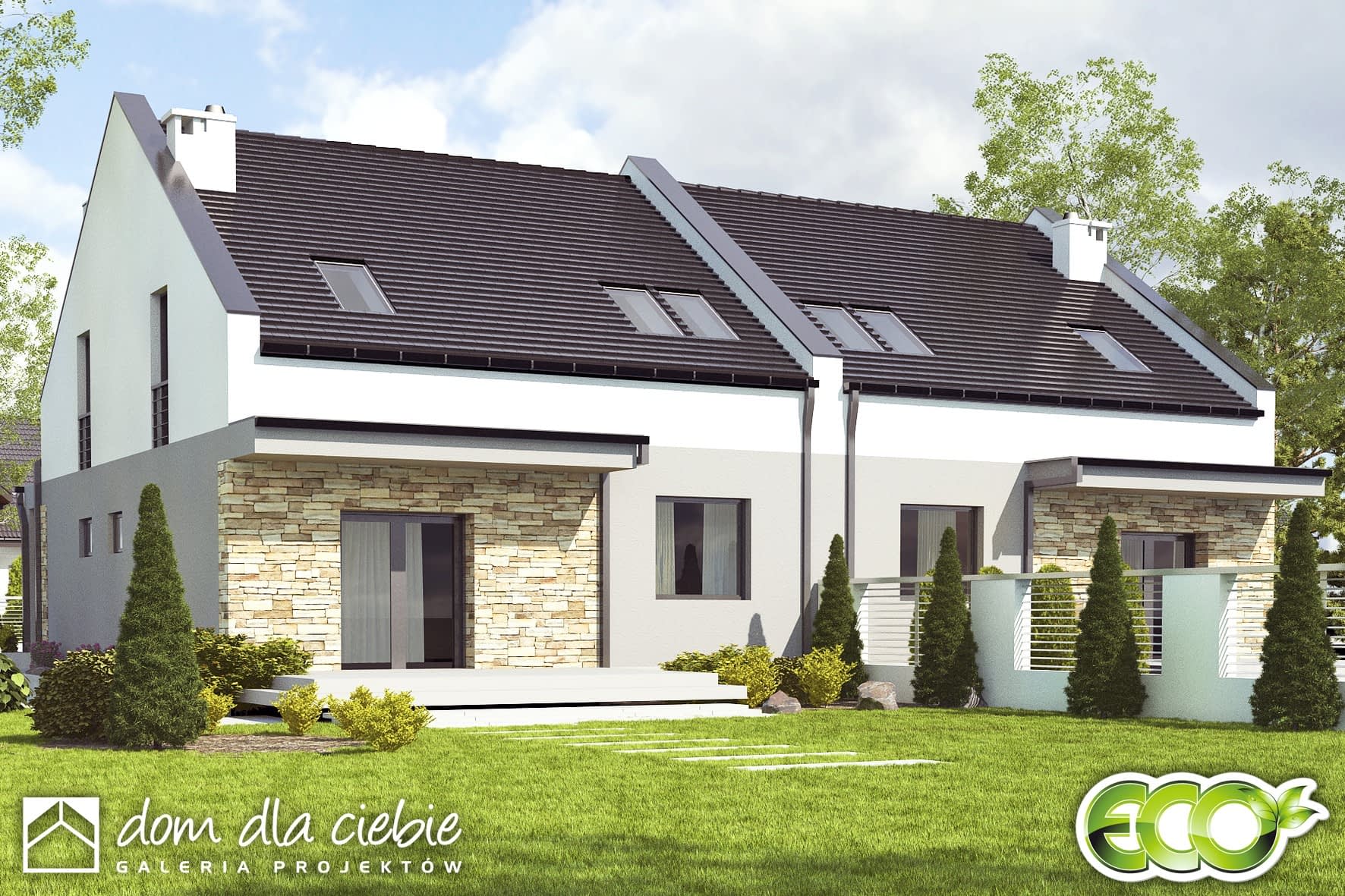 (Uwaga: projekty typu bliźniak oferujemy jako domy dwulokalowe, projekt można zamówić również w zabudowie bliźniaczej)Opis dotyczy jednego segmentu:Propozycja Mazurek III to niewielki, komfortowy dom z garażem na jedno auto. Projekt poprzez prostą konstrukcję i zwartą bryłę stawia na ekonomię zarówno podczas budowy jak i w eksploatacji. Mazurek III dedykowany jest dla 4-5 osobowej rodziny. Parter budynku to salon połączony z kuchnią i jadalnią, pokój mogący pełnić rolę gabinetu lub pokoju gościnnego, nieduża łazienka, pomieszczenie techniczne z piecem. Pod schodami prowadzącymi na piętro wygospodarowano miejsce na spiżarnię albo garderobę. Piętro to 3 sypialnie, łazienka z miejscem na pralkę. Projekt przewidziany jest do zabudowy wolnostojącej, bliźniaczej oraz szeregowej.