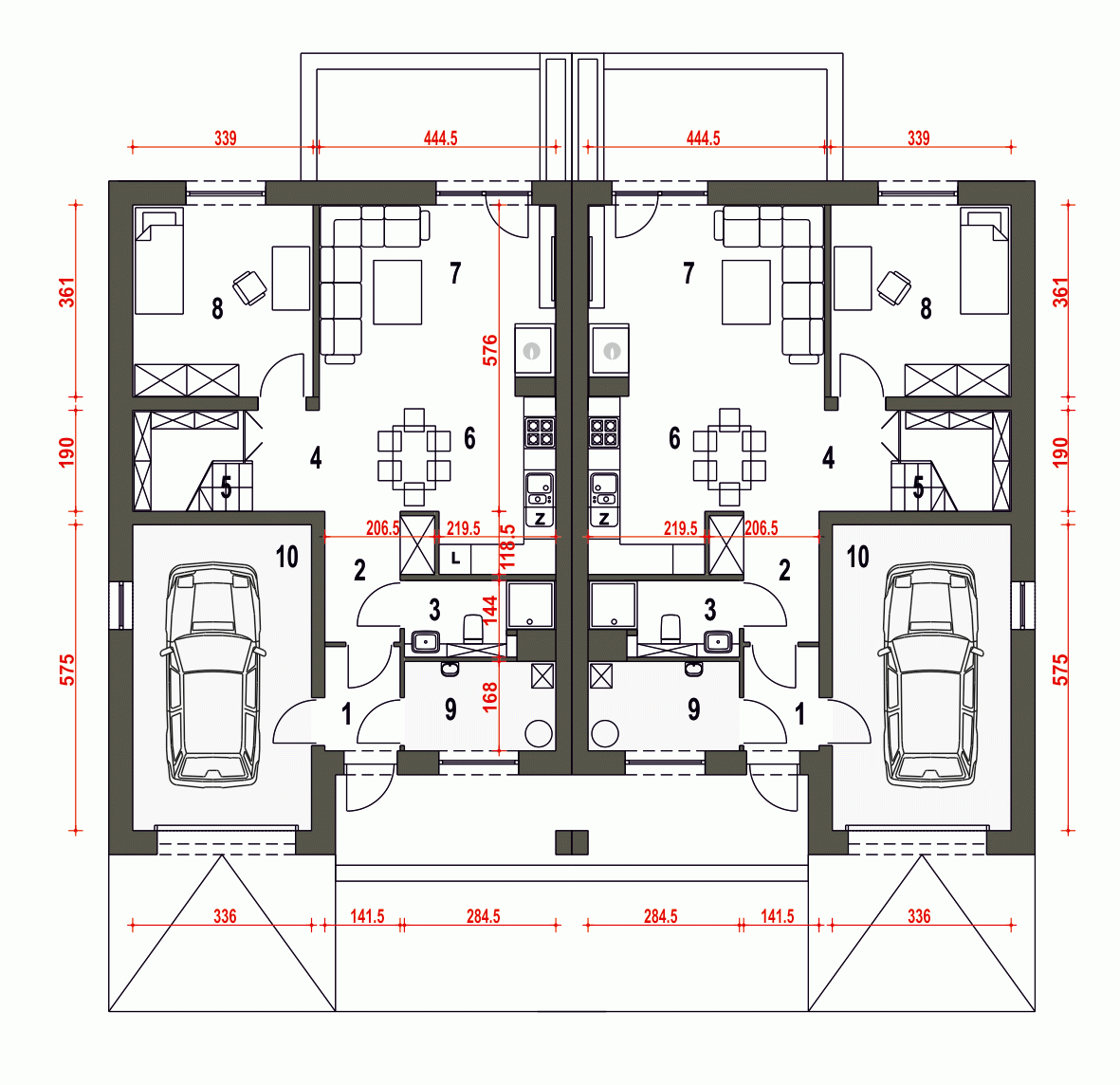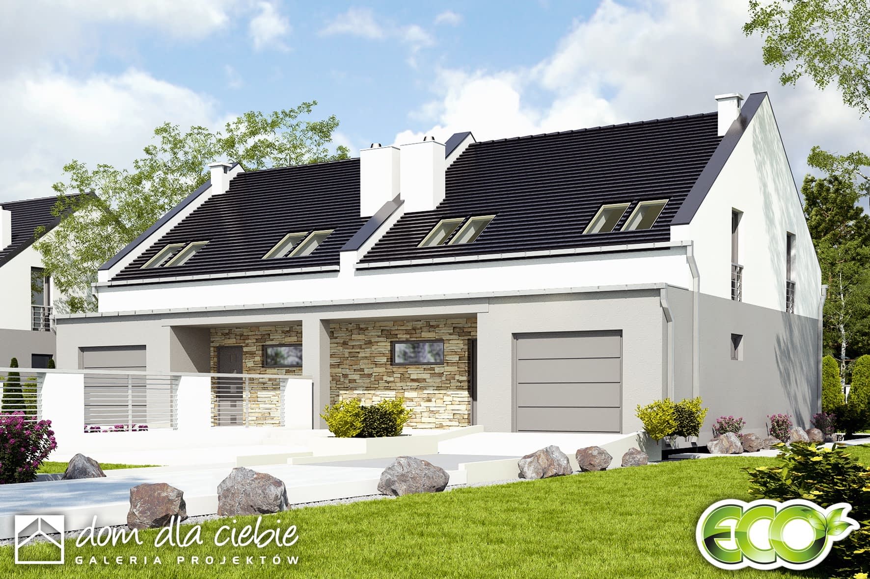 (Uwaga: projekty typu bliźniak oferujemy jako domy dwulokalowe, projekt można zamówić również w zabudowie bliźniaczej)Opis dotyczy jednego segmentu:Propozycja Mazurek III to niewielki, komfortowy dom z garażem na jedno auto. Projekt poprzez prostą konstrukcję i zwartą bryłę stawia na ekonomię zarówno podczas budowy jak i w eksploatacji. Mazurek III dedykowany jest dla 4-5 osobowej rodziny. Parter budynku to salon połączony z kuchnią i jadalnią, pokój mogący pełnić rolę gabinetu lub pokoju gościnnego, nieduża łazienka, pomieszczenie techniczne z piecem. Pod schodami prowadzącymi na piętro wygospodarowano miejsce na spiżarnię albo garderobę. Piętro to 3 sypialnie, łazienka z miejscem na pralkę. Projekt przewidziany jest do zabudowy wolnostojącej, bliźniaczej oraz szeregowej.