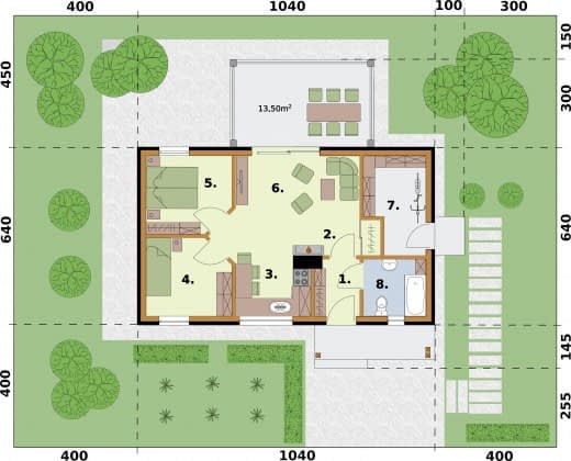 - Minimalne wymiary działki18.4 x 14.9m