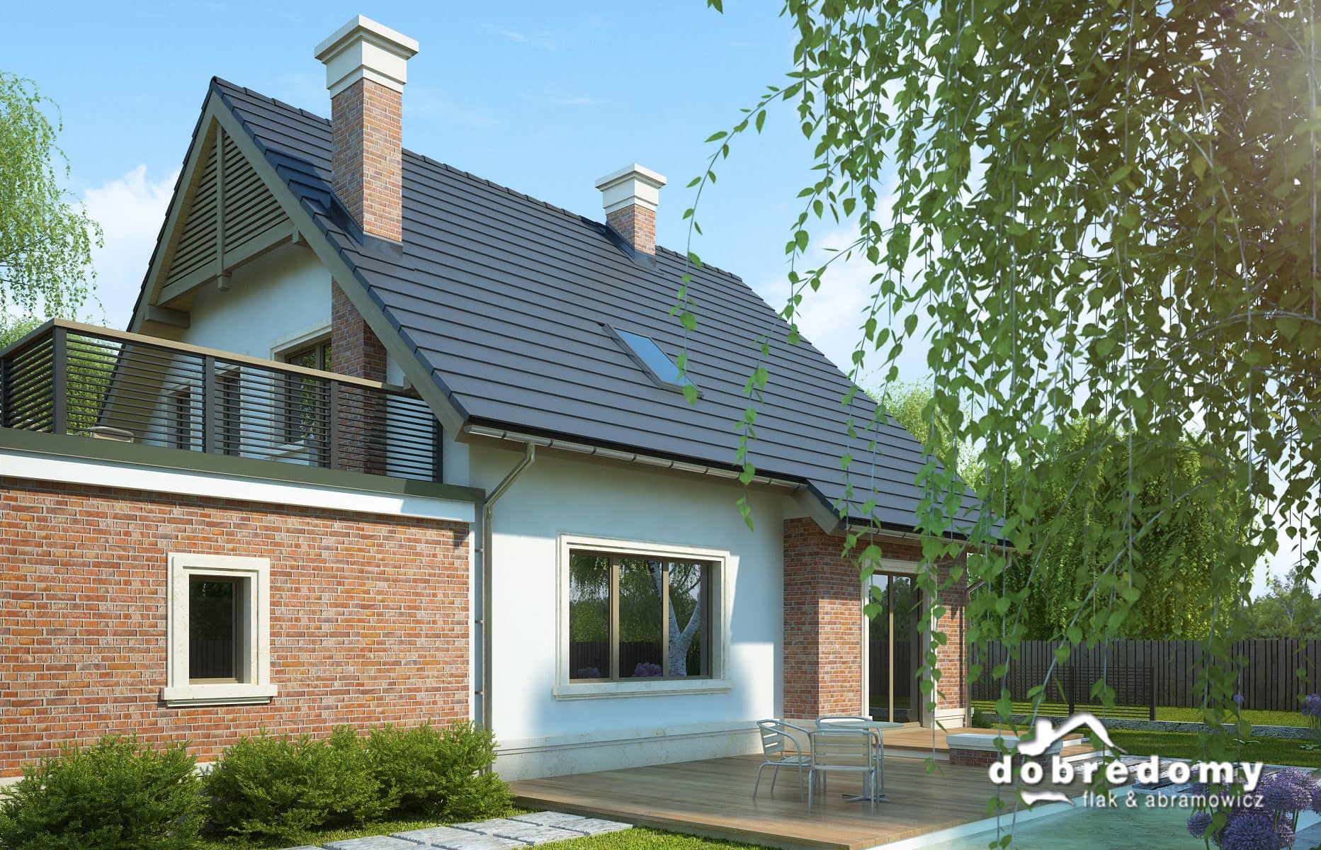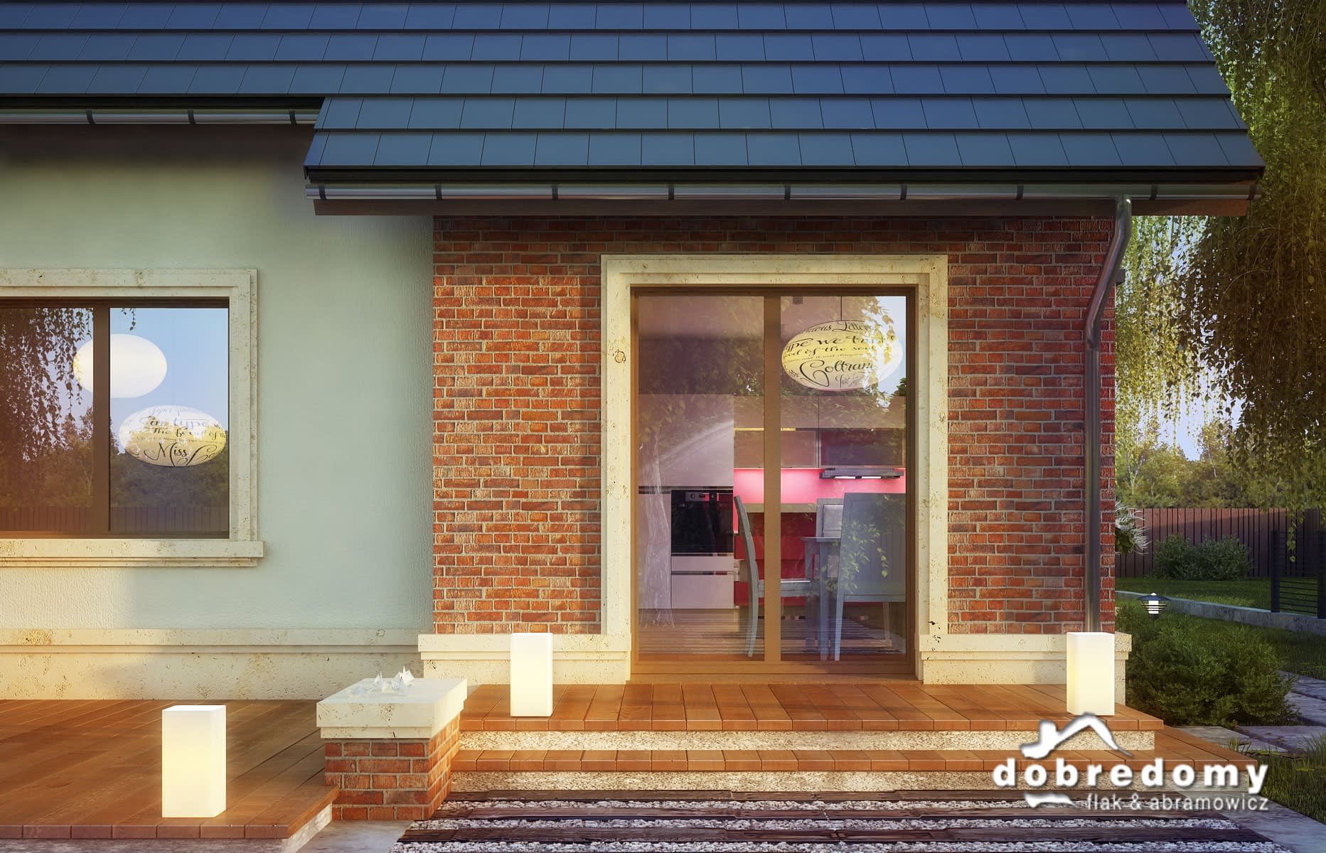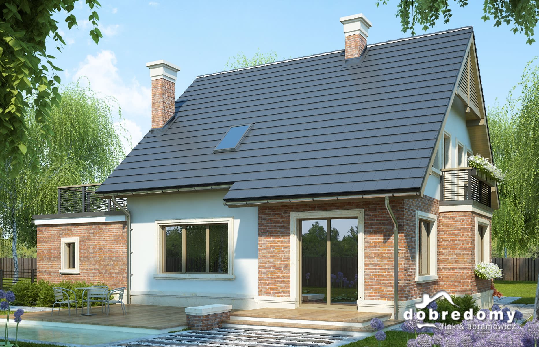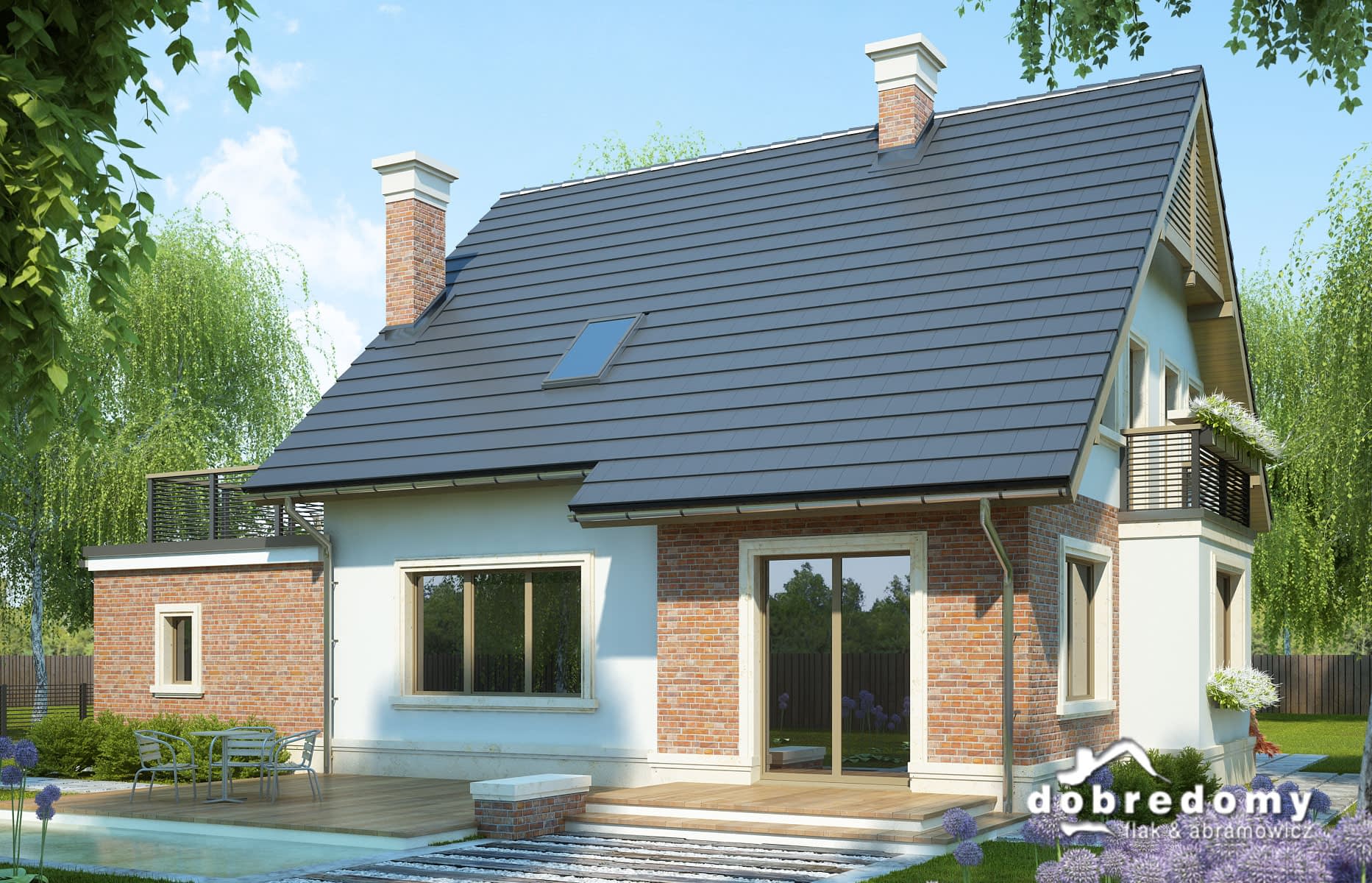 Elewacje pokryte tynkiem strukturalnym w systemie ociepleń Termo Organika i płytkami klinkierowymi. W projekcie zastosowano okna dachowe marki FAKRO. Pokrycie dachu - dachówka ceramiczna lub cementowa CREATON.