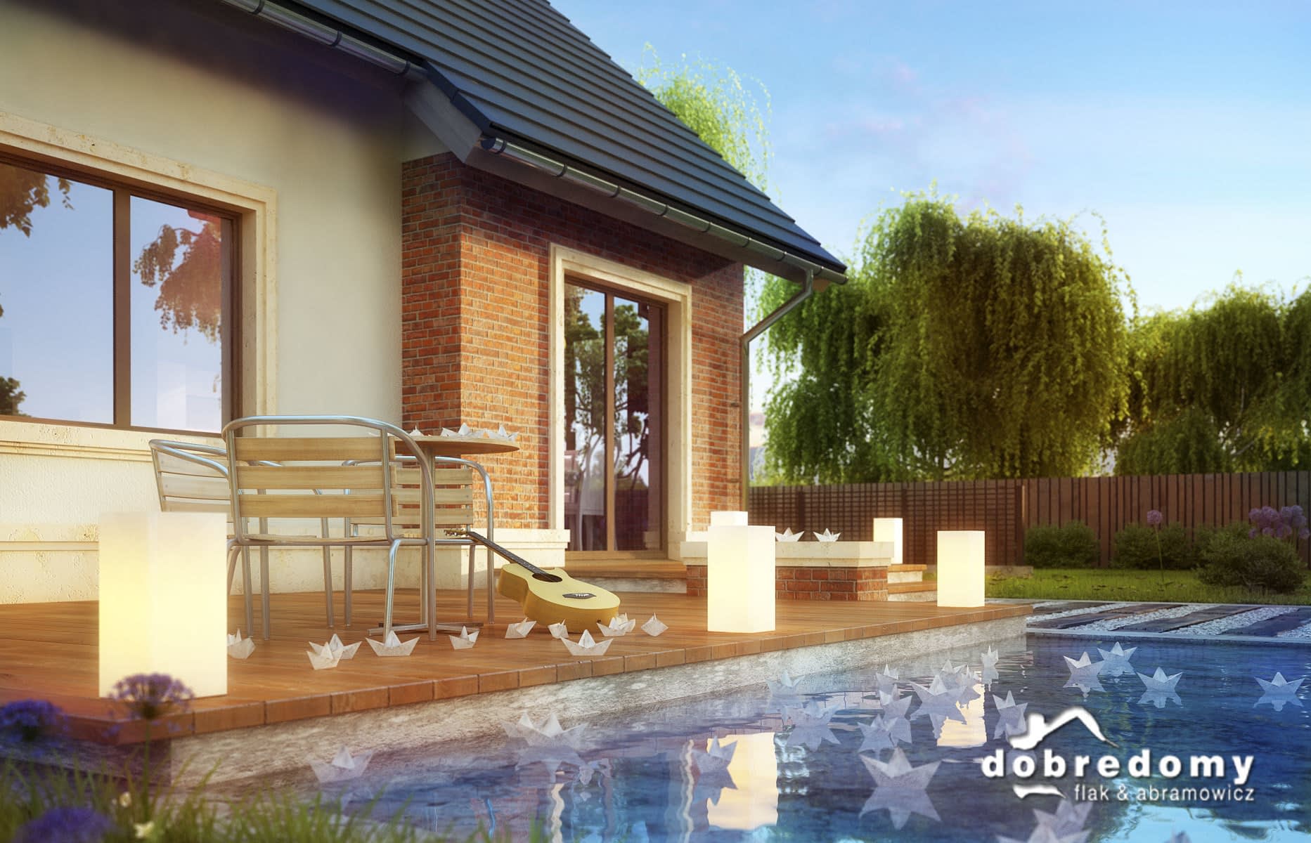 - Kolorystyka elewacji, detali dekoracyjnych, kształtu podjazdów i tarasów.