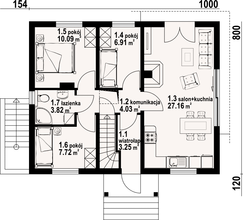 - 1.3 - salon+kuchnia27.16 m²