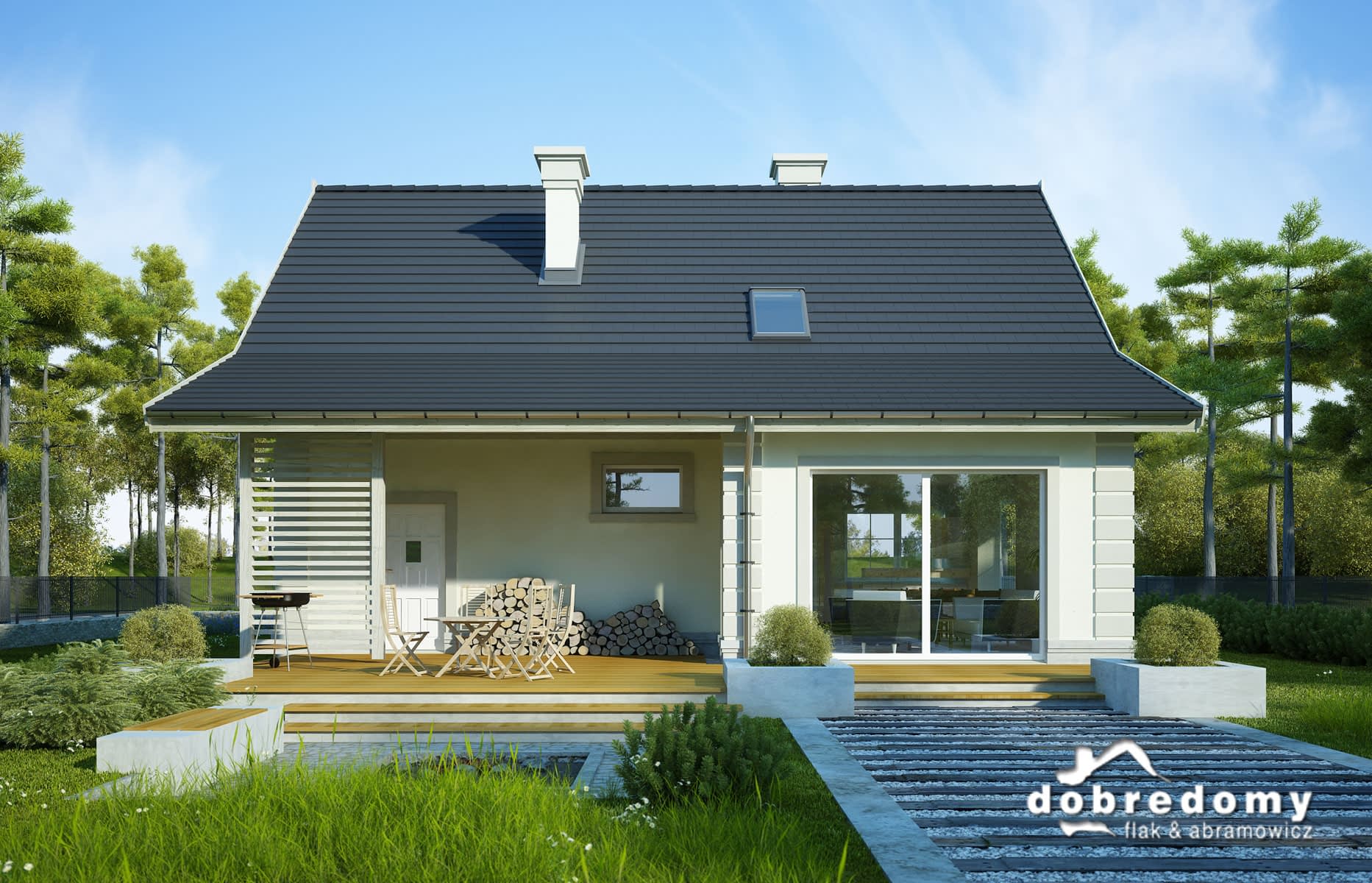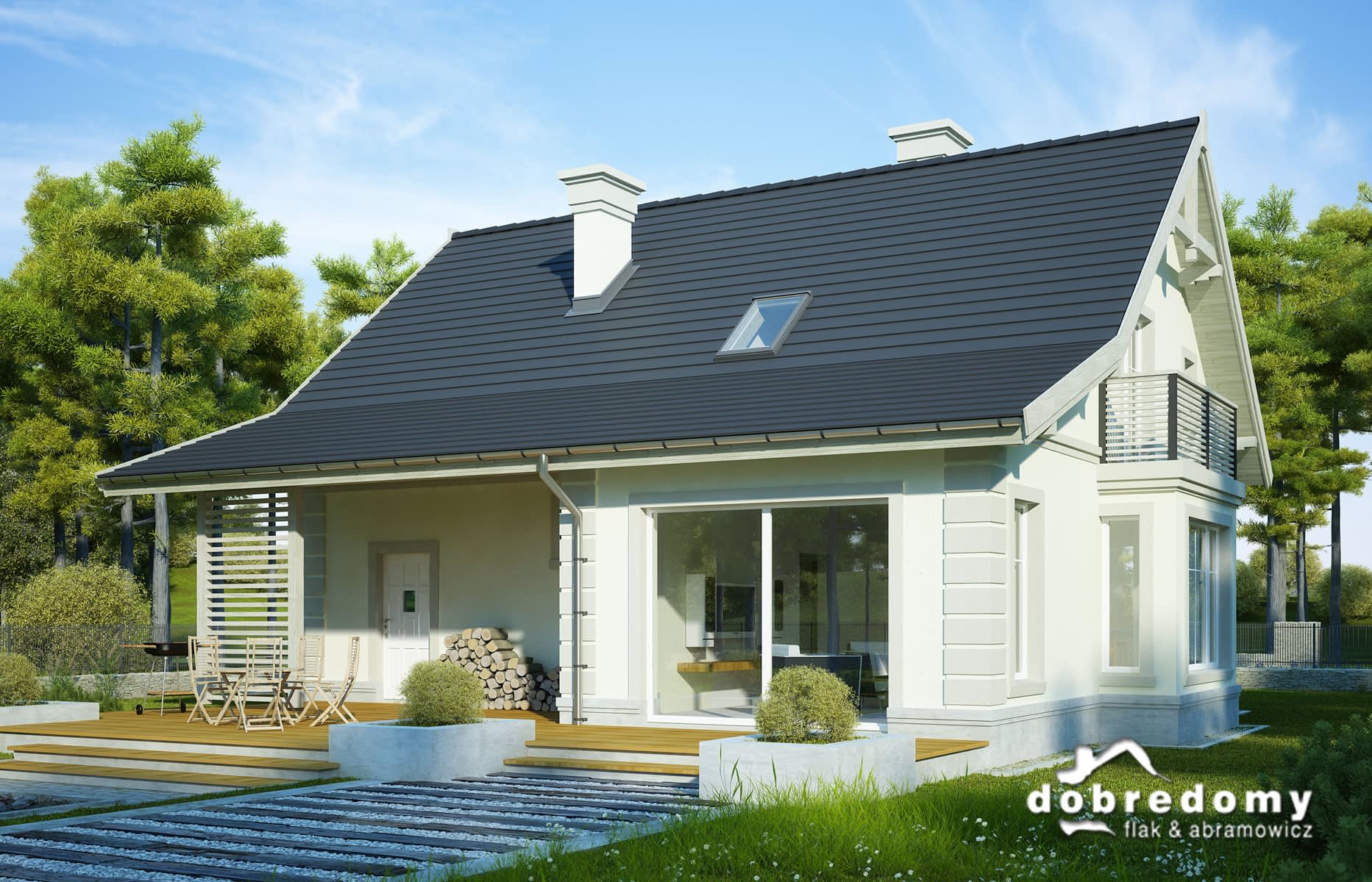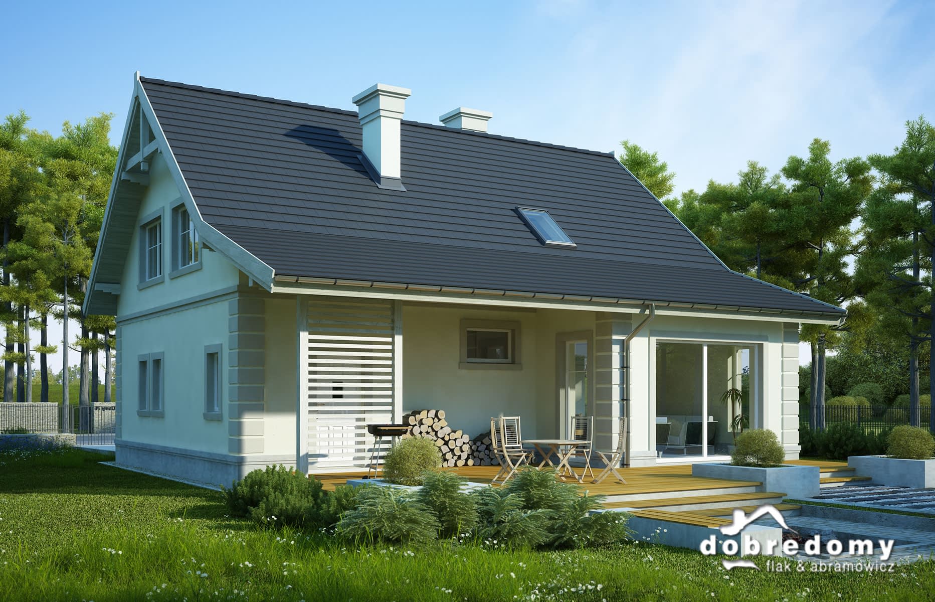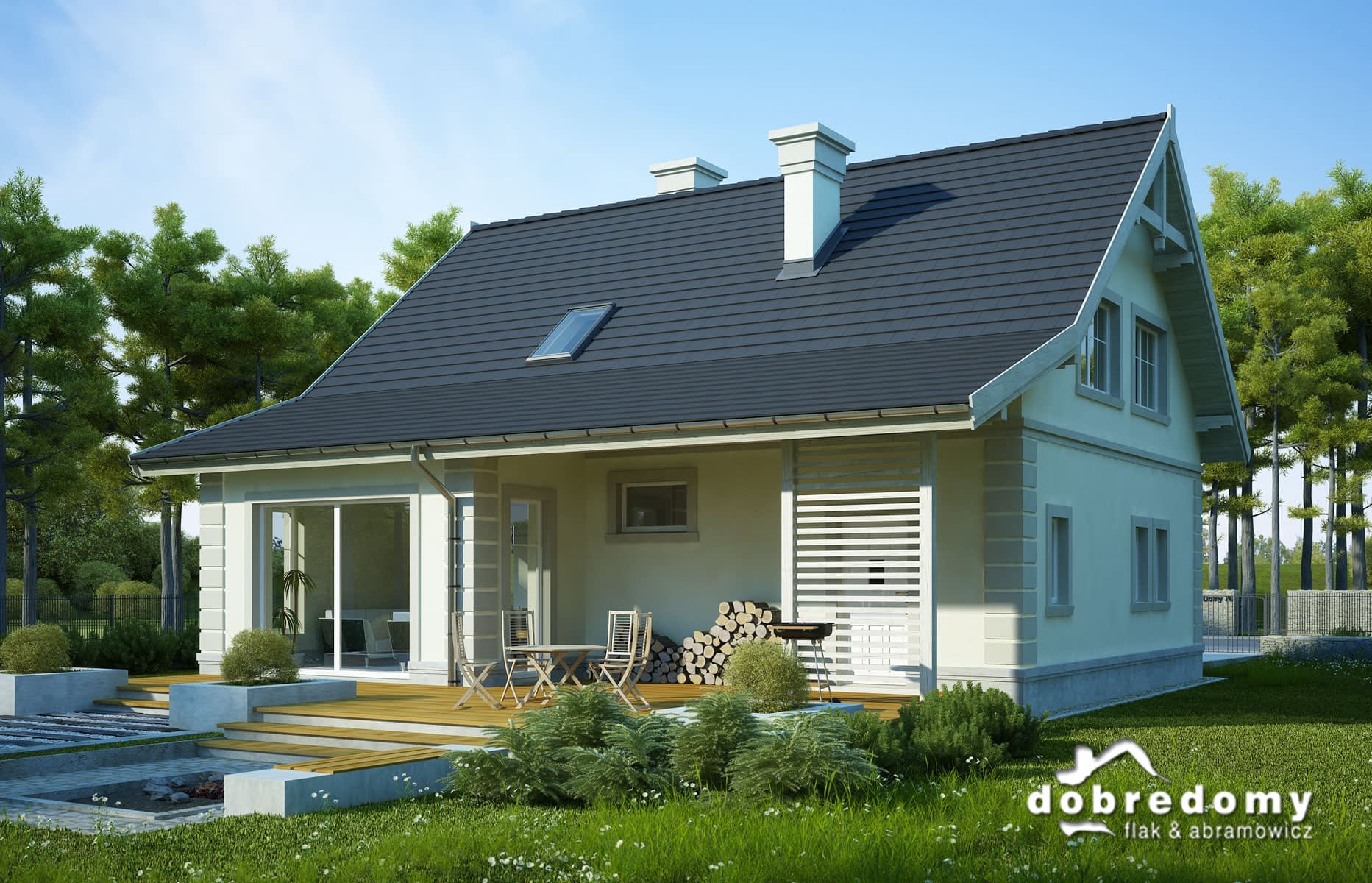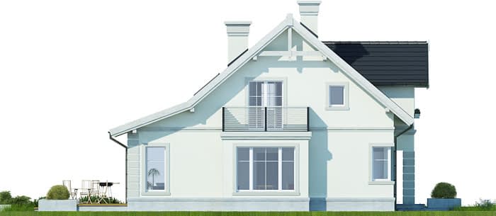 Elewacje pokryte tynkiem strukturalnym w systemie ociepleń Termo Organika. W projekcie zastosowano okna dachowe marki FAKRO. Pokrycie dachu - dachówka ceramiczna lub cementowa CREATON.