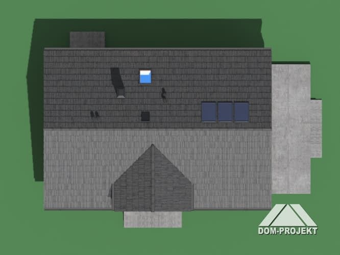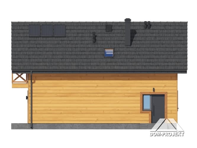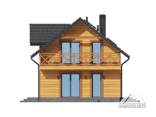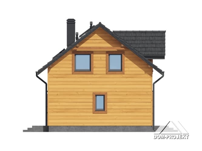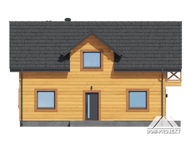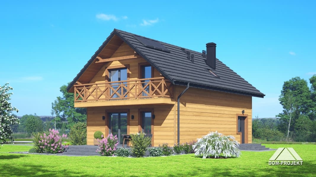 Dom w konstrukcji szkieletu drewnianego. Na parterze salon z aneksem kuchennym oraz wyjściem na taras. Pokój do pracy, wc z pralką, kotłownia, komunikacja, wiatrołap. Na poddaszu cztery pokoje, łazienka, komunikacja. Zwarta bryła budynku oraz dach dwuspadowy sprzyjają szybkiej i taniej budowie oraz niskim kosztom eksploatacji.Rzuty