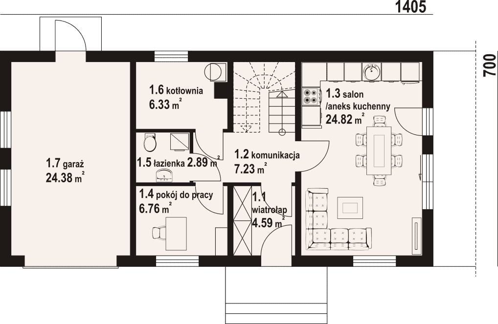 - 1.7 - garaż24.38 m²