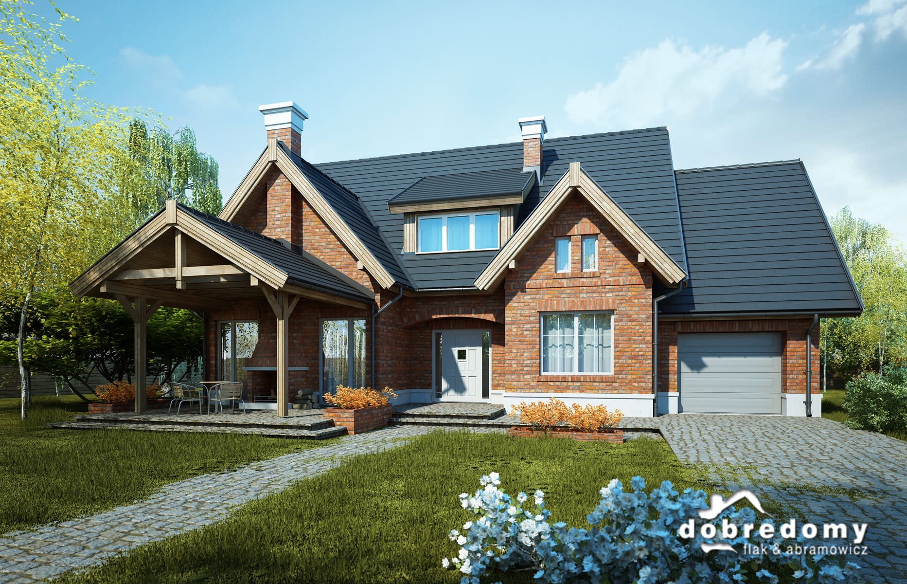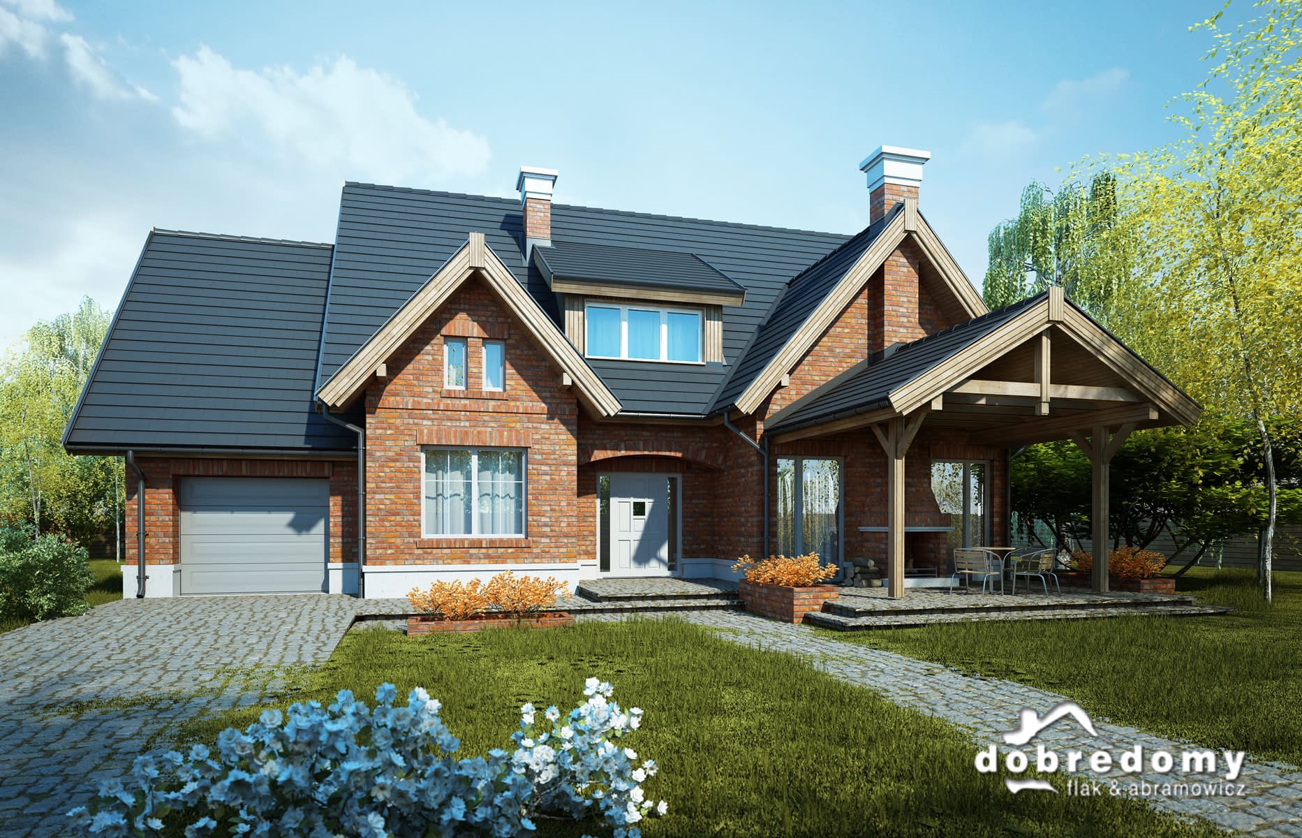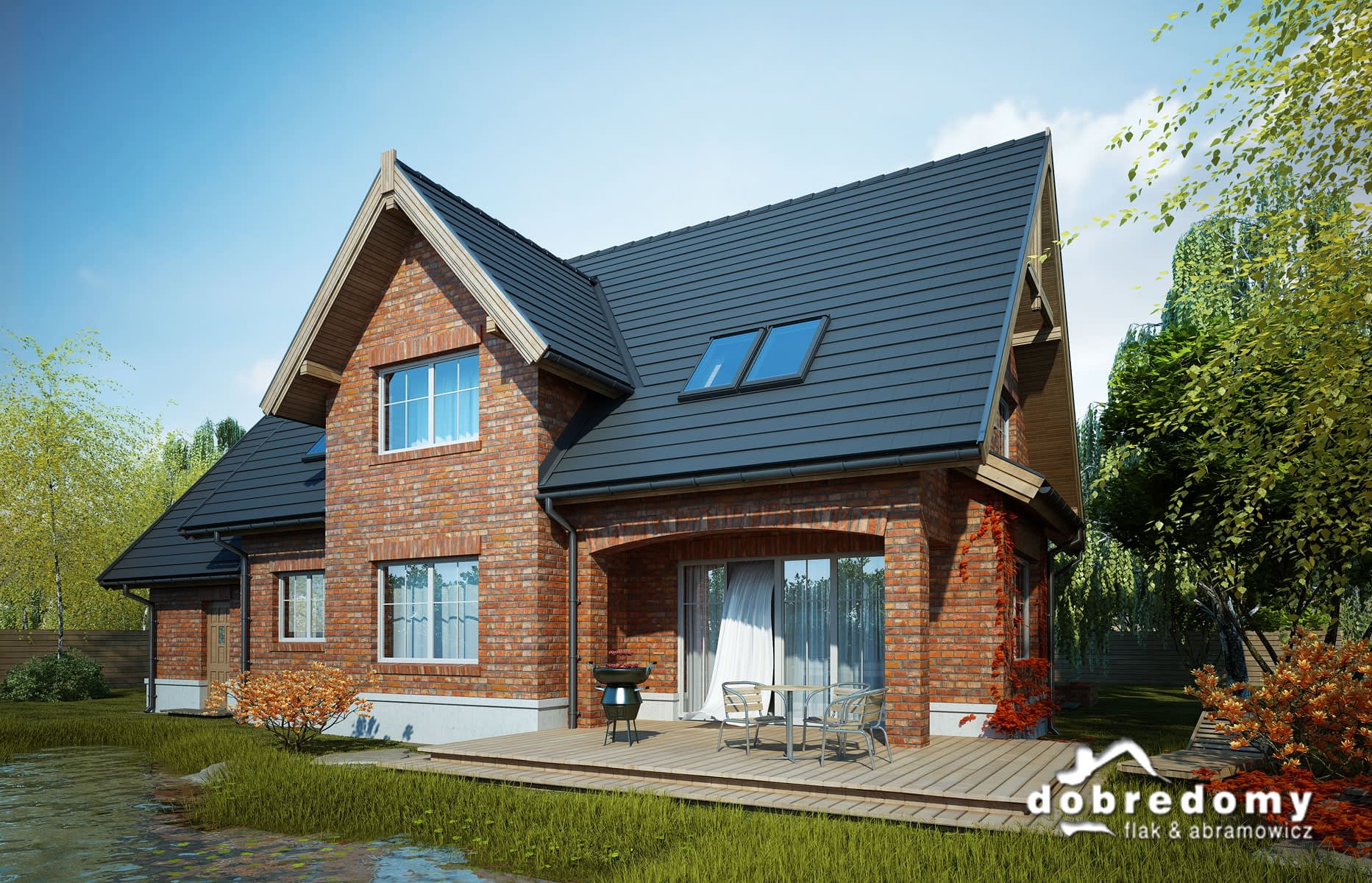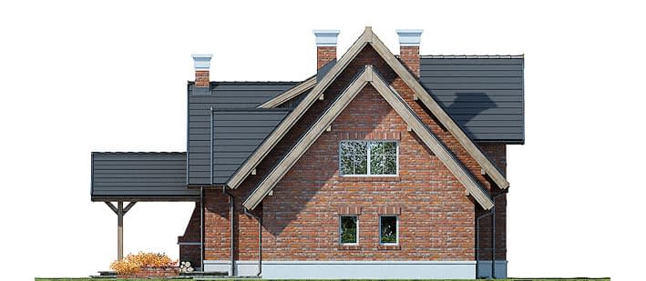 Elewacje pokryte okładziną klinkierową oraz tynkiem strukturalnym w systemie ociepleń Termo Organika. Pokrycie dachu - dachówka ceramiczna lub cementowa CREATON.