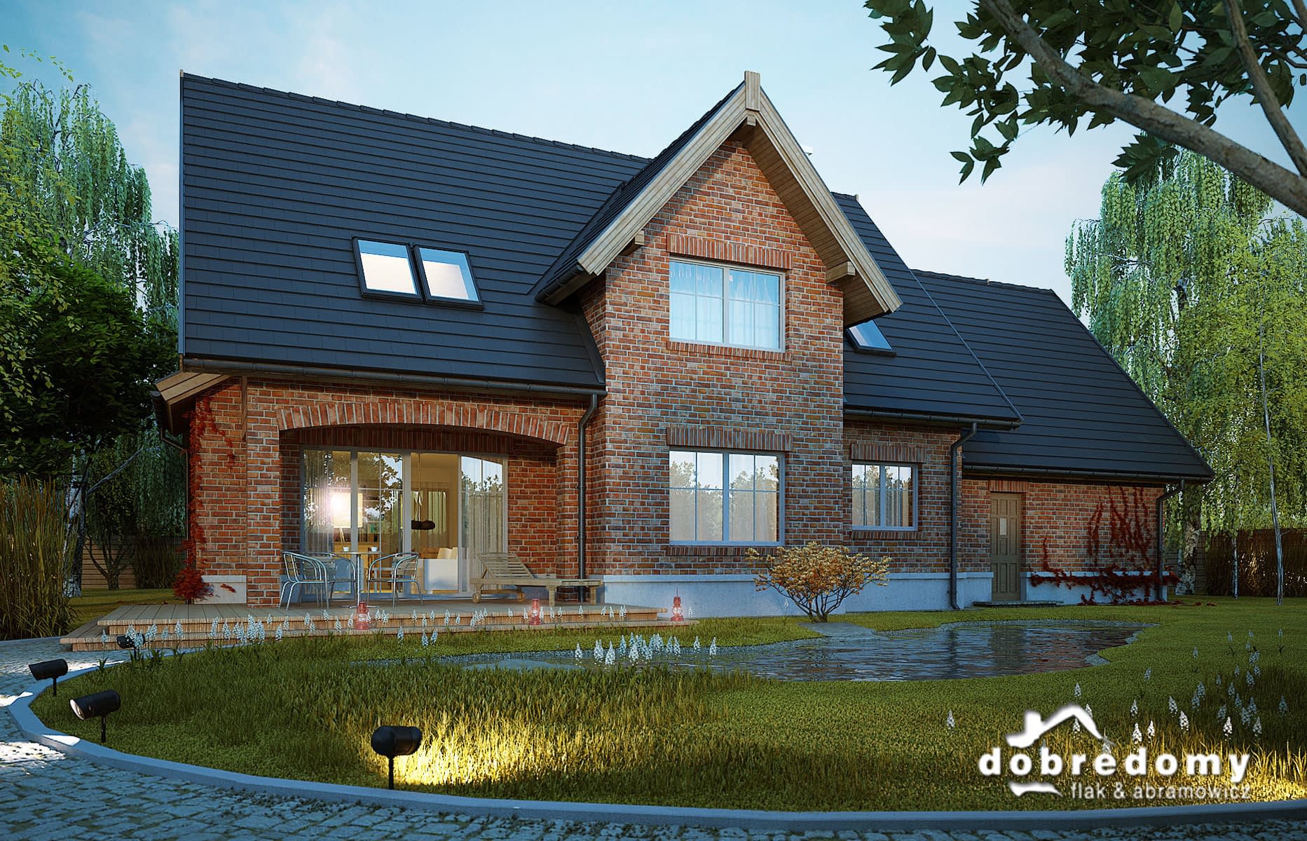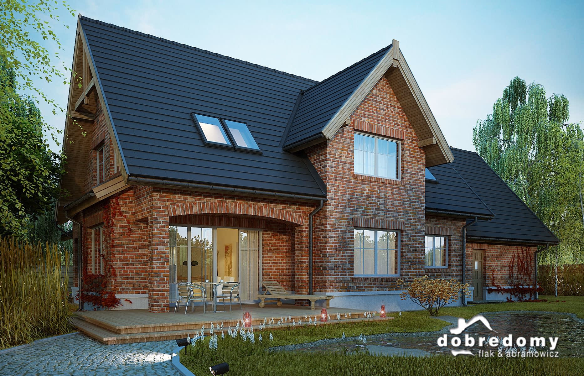 Elewacje pokryte okładziną klinkierową oraz tynkiem strukturalnym w systemie ociepleń Termo Organika. W projekcie zastosowano okna dachowe marki FAKRO. Pokrycie dachu - dachówka ceramiczna lub cementowa CREATON.