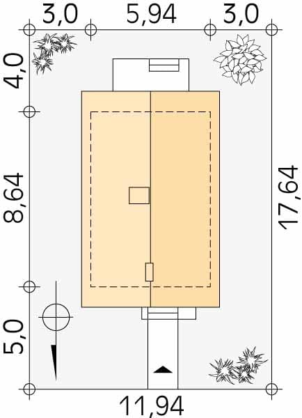 - Minimalne wymiary działki17.64 x 11.94m