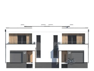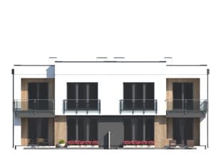 Projekt Miodowy jest propozycją budynku mieszkalnego w zabudowie bliźniaczej o współczesnej modernistycznej formie. Program użytkowy segmentu został podzielony na strefę dzienną na parterze oraz strefę nocną na piętrze. Do bryły mieszkalnej segmentu doprojektowany został jednostanowiskowy garaż. Na parterze znajdują się: wiatrołap, hol, kuchnia, salon z jadalnią, łazienka, garderoba, kotłownia oraz garaż. Na piętrze zaprojektowano hol, łazienkę oraz trzy sypialnie. Budynek jest prosty i ekonomiczny w budowie, a rozwiązania materiałowe nadają mu nowoczesnego charakteru. Segment budynku przeznaczony jest do zaspokojenia potrzeb 4-5 osobowej rodziny.Konstrukcja