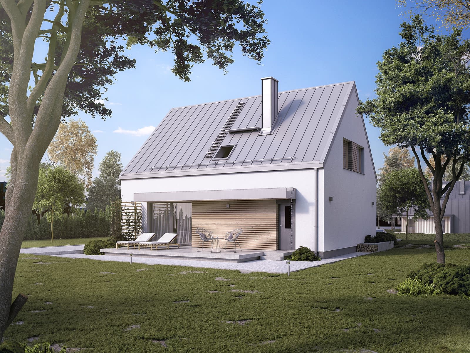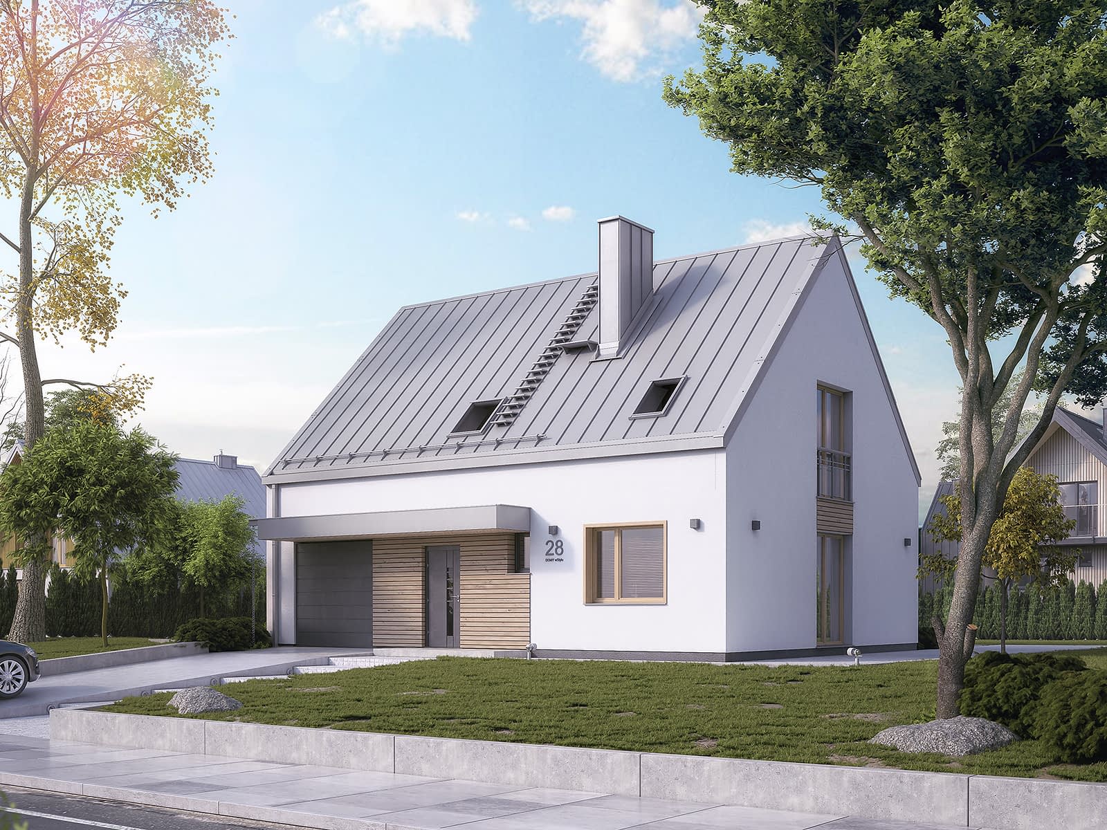 Mirabelka to projekt kompaktowego domu o nowoczesnej formie dla 4-osobowej rodziny. Prosta, współczesna bryła sprzyja niskim kosztom użytkowania. Budynek charakteryzuje się optymalnymi rozwiązaniami przestrzennymi, które zapewniają mieszkańcom wygodę i poczucie prywatności. Mimo niewielkich rozmiarów domu, kuchnia została uzupełniona o spiżarnię, a w głównej sypialni wygospodarowano miejsce na dodatkową łazienkę i wydzieloną garderobę.Konstrukcja
