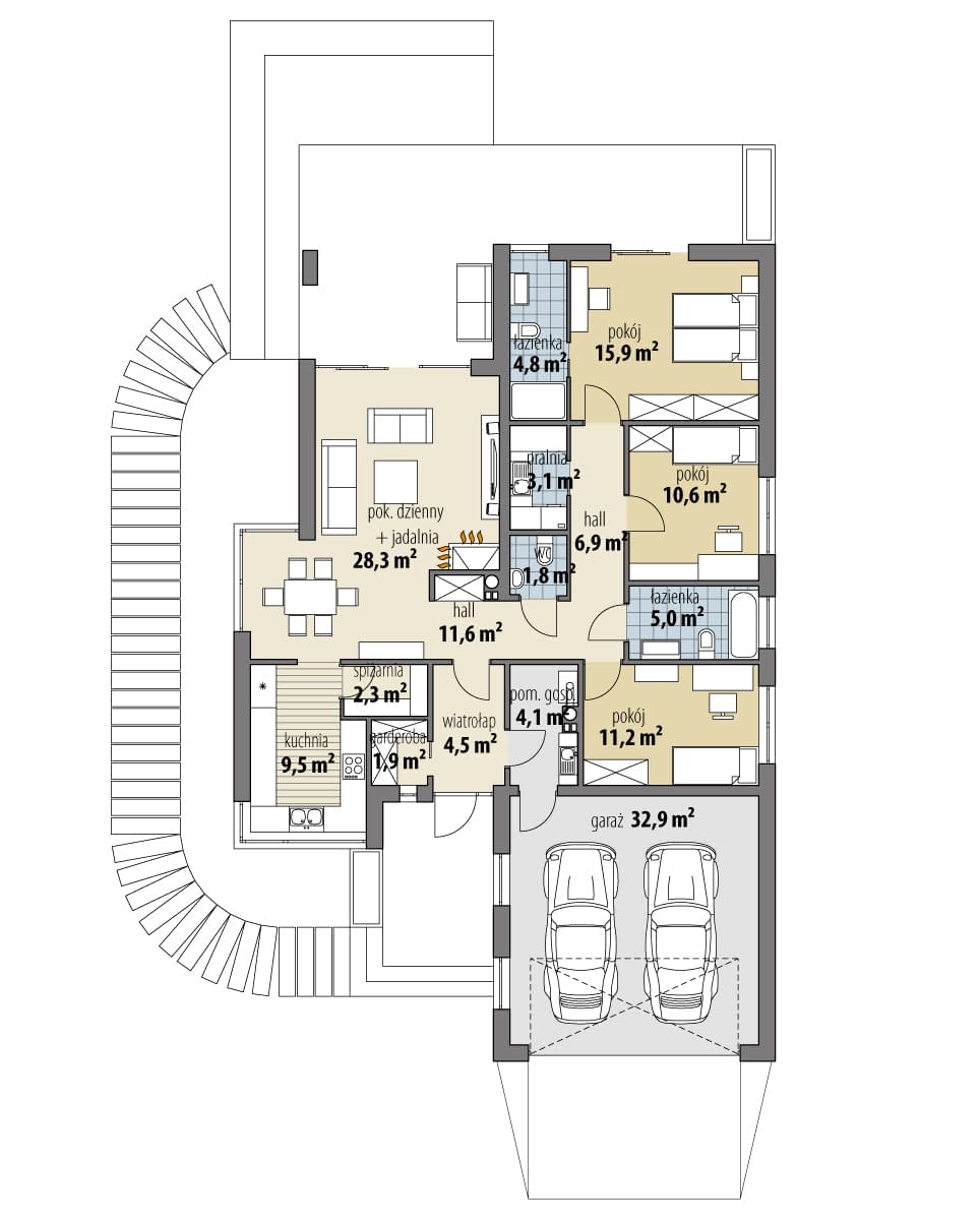 - Rodzaj dachuWielospadowy