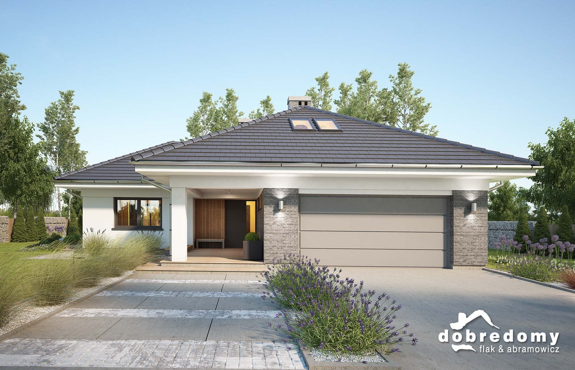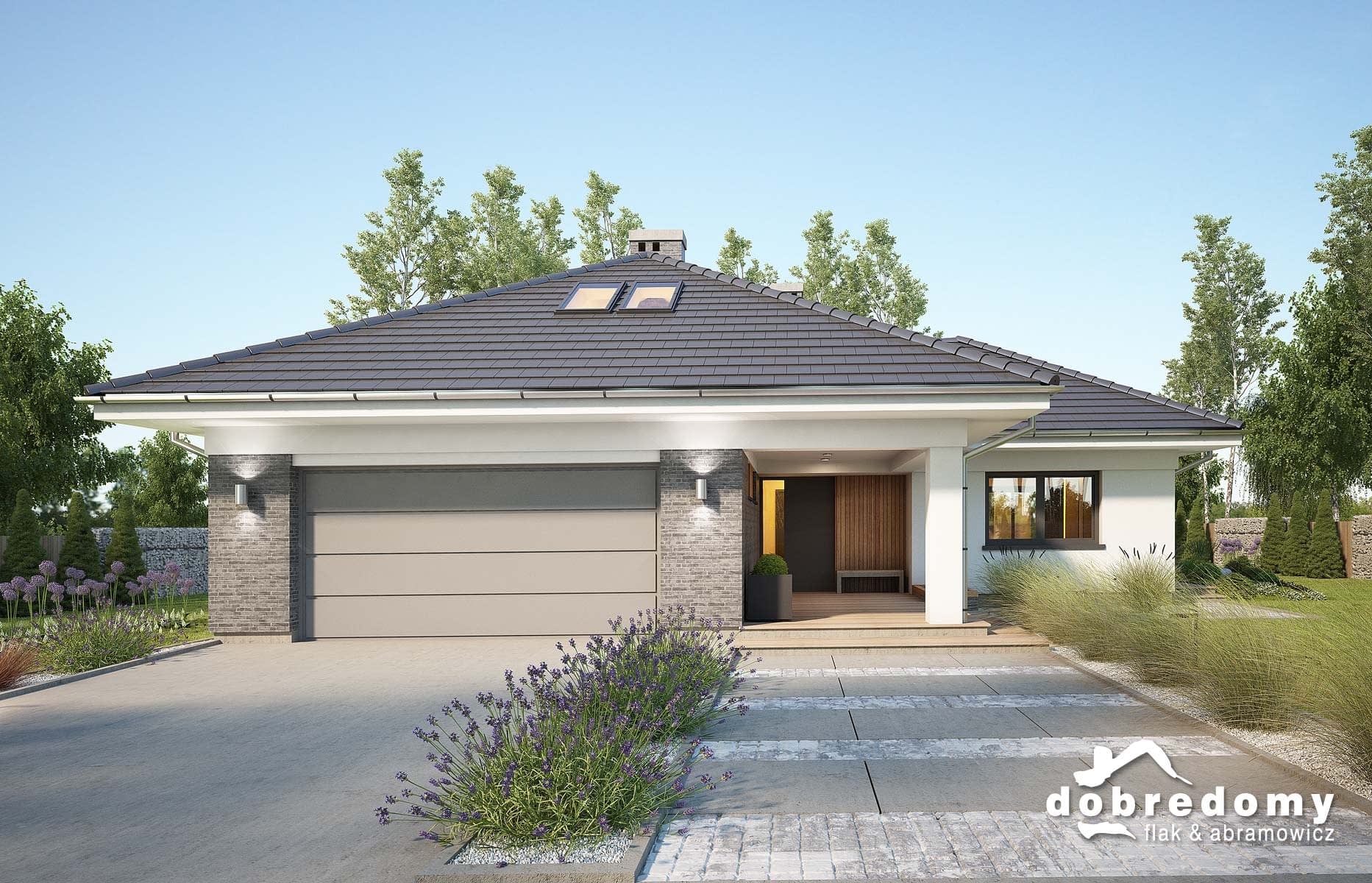 Projekt domu jednorodzinnego, parterowego, dla 4-5-osobowej rodziny. Część dzienna obejmuje pokój dzienny, dużą jadalnię oraz sporą kuchnię ze spiżarnią. Tuz przy wiatrołapie zaprojektowano kotłownię oraz garaż. W hallu znajduje się osobne wc. Strefa nocna domu to trzy sypialnie (jedna z własną łazienką) oraz ogólnodostępna łazienka i pralnia. Na nieużytkowym poddaszu można wydzielić w ramach adaptacji trzy pokoje. Projekt dostępny jest w wersji z innym układem pomieszczeń (trzy sypialnie) - Miriam III, oraz w wersji o mniejszej powierzchni użytkowej (trzy sypialnie) - Miriam II oraz Miriam.