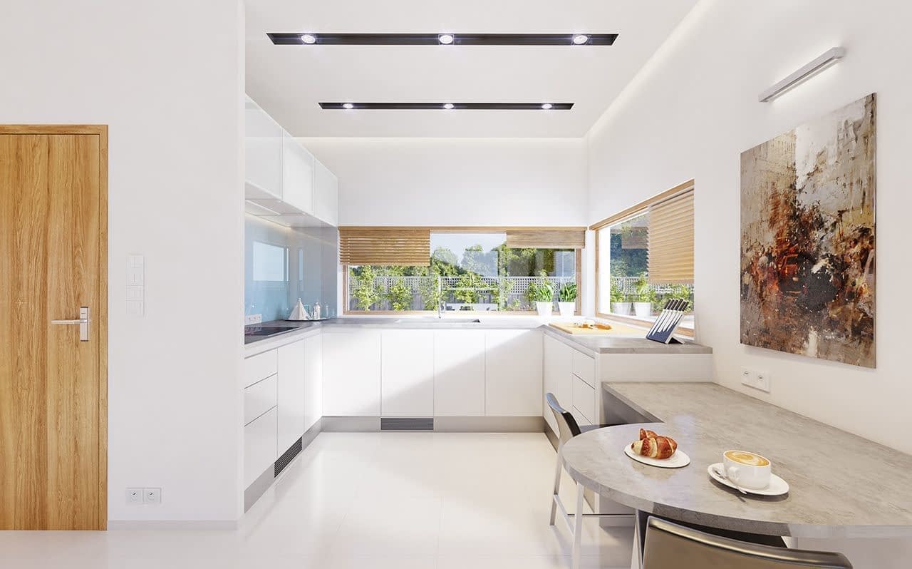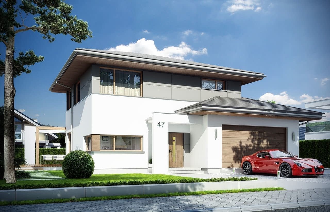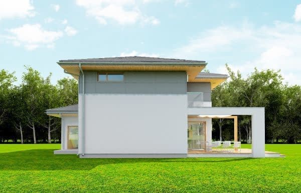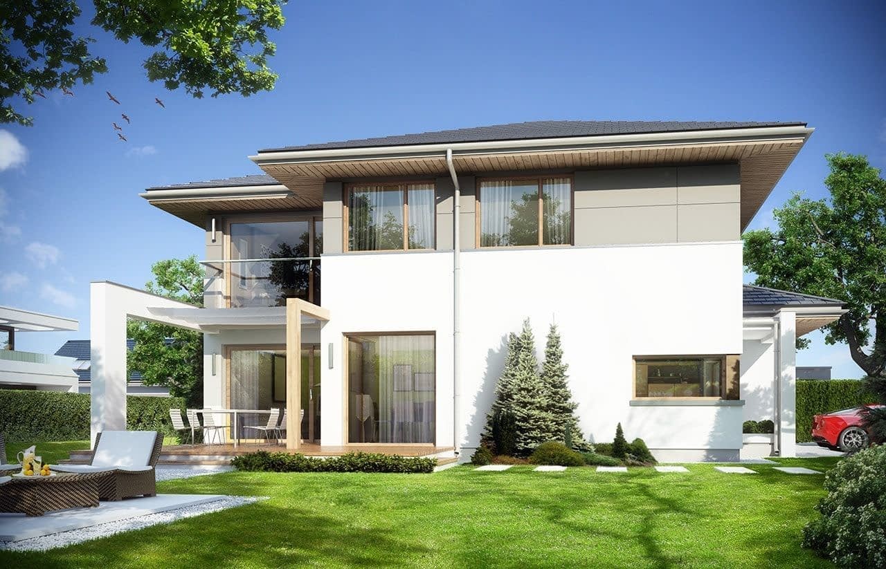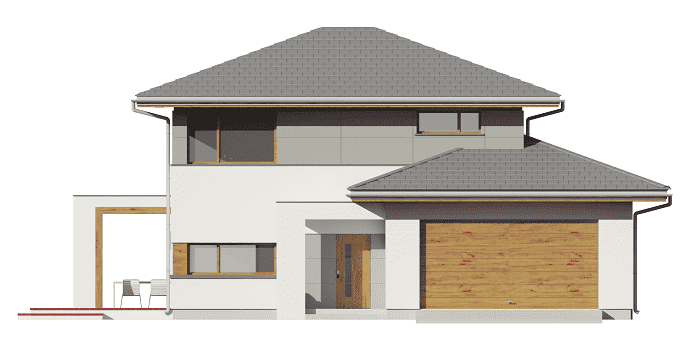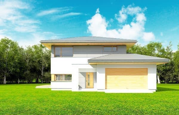 Projekt domu Modena to uroczy i energooszczędny piętrowy dom dla cztero-pięcioosobowej rodziny. Jest to propozycja dla Inwestorów lubiących nowoczesną architekturę, którzy nie rezygnują z funkcjonalności i komfortu swojego domu. Projekt domu Modena swoim stylem stara się nawiązać do charakteru efektownych miejskich willi. Piętrowa bryła budynku została przekryta wielospadowym dachem. Dobrze dobrane detale architektoniczne, ciekawie rozmieszczone okna, włókno cementowe okładziny na ścianach - wszystko to tworzy atrakcyjny wygląd zewnętrzny domu. Wnętrze to otwarta część dzienna na parterze, z salonem, holem z ładnie wkomponowanymi schodami, jadalnią i kuchnią, oraz sypialnie na piętrze domu. Duże przeszklenia w salonie i jadalni pozwalają cieszyć się widokiem ogrodu z wnętrza budynku. Na parterze wygospodarowano podręczną spiżarnię bezpośrednio przy kuchni. Duża kotłownia za garażem znakomicie może pełnić również rolę pomieszczenia gospodarczego w którym schowamy narzędzia ogrodowe. Na piętrze znajduje się apartament rodziców z własną łazienką i garderobą, sypialnie dziecięce z łazienką, oraz dodatkowy pokój i pralnia. Wnętrze domu Modena jest przestronne, a poszczególne pokoje duże i kształtne. Projekt domu Modena mimo niewielkiej powierzchni można uznać za komfortowy, wręcz luksusowy dom dla współczesnej rodziny. Pracownia posiada wersję odbicia lustrzanego projektu domu Modena. Zapraszamy!