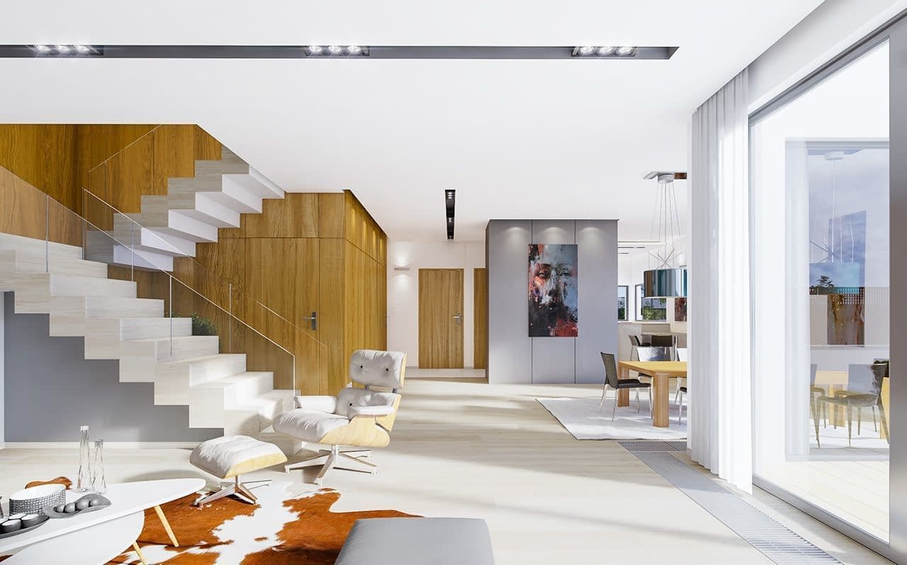 - Zmianę umiejscowienia, kształtu i materiału wykonania schodów w budynku.