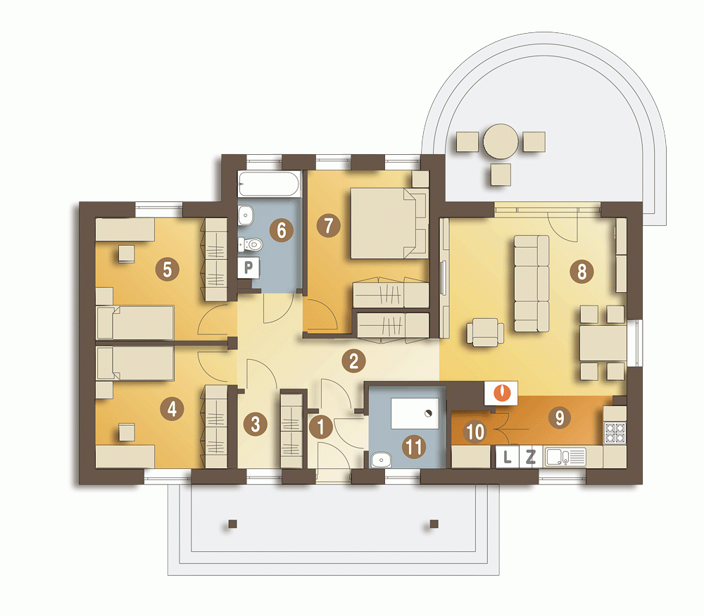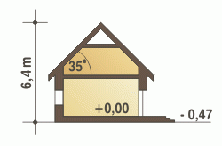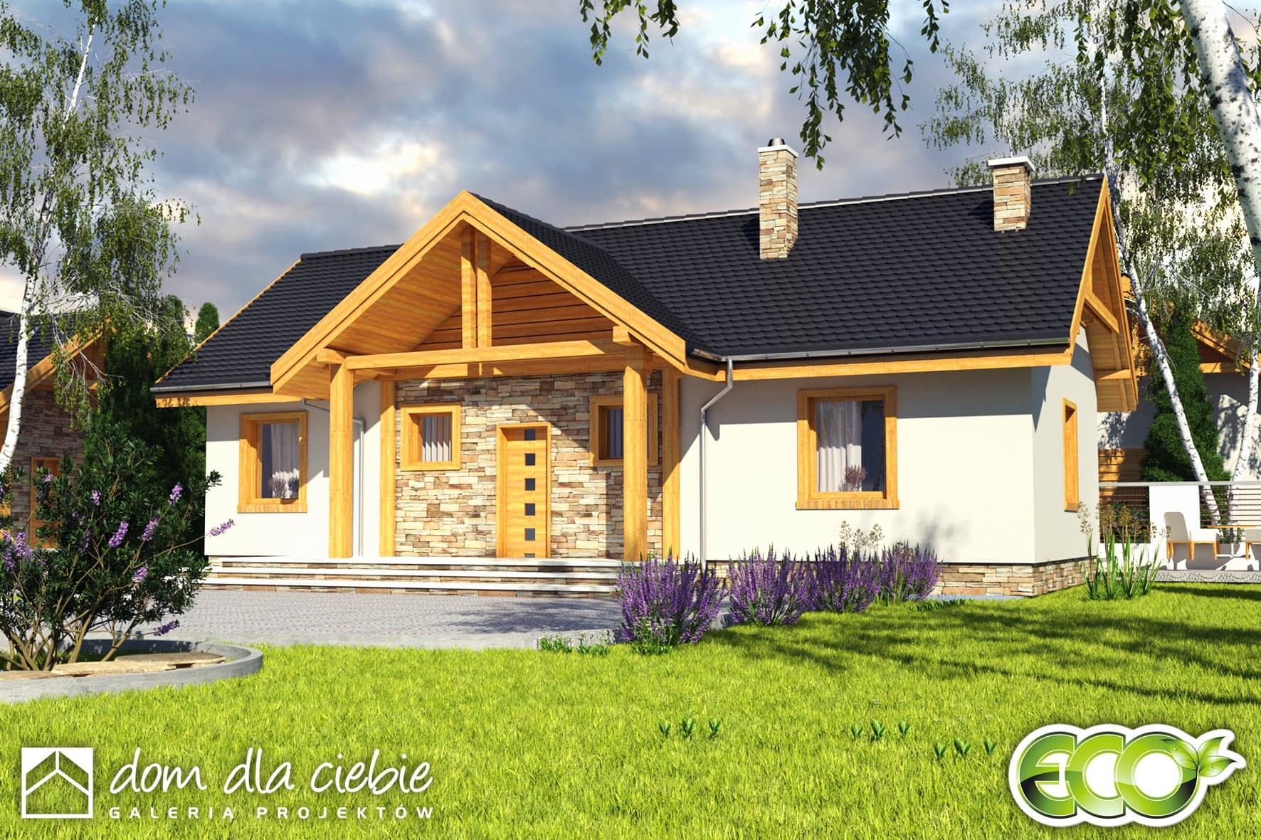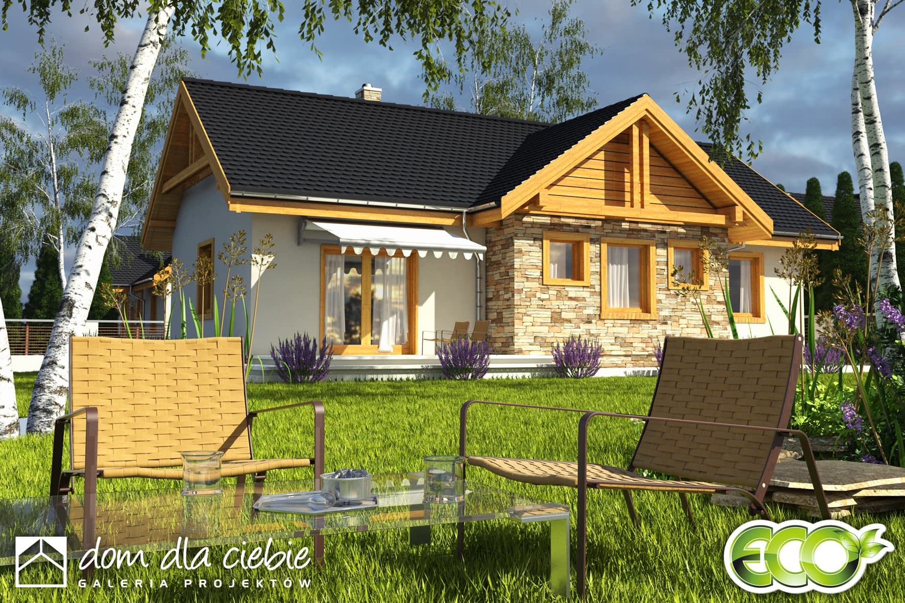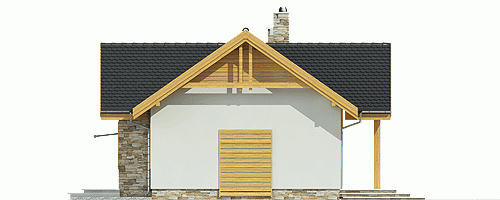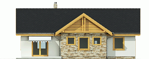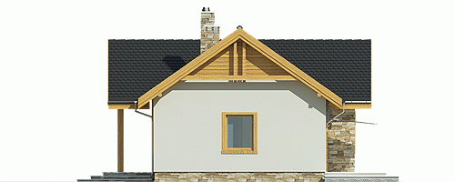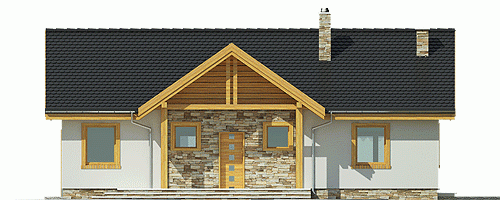 Projekt domu jednorodzinnego Modraszka jest mały i optymalny. Jest to klasyczny parterowy dom jednorodzinny zaprojektowano na głównym rzucie prostokąta z dachem dwuspadowym. Funkcja mieszkalna przewidziana została dla 4-ro osobowej rodziny. Powierzchnia mieszkalna obejmuje trzy pokoje, salon z otwartą kuchnią i spiżarnią, garderobę, łazienkę i wygodny hol rozprowadzający. Pomieszczenie garderoby, w razie zapotrzebowania, można zamienić na dodatkową łazienkę na etapie adaptacji. Kotłownię przewiduje się na paliwo stałe - jest ona dostępna z wiatrołapu. W dziennej strefie zaprojektowano foremny salon z kominkiem i wyjściem na część tarasową.
