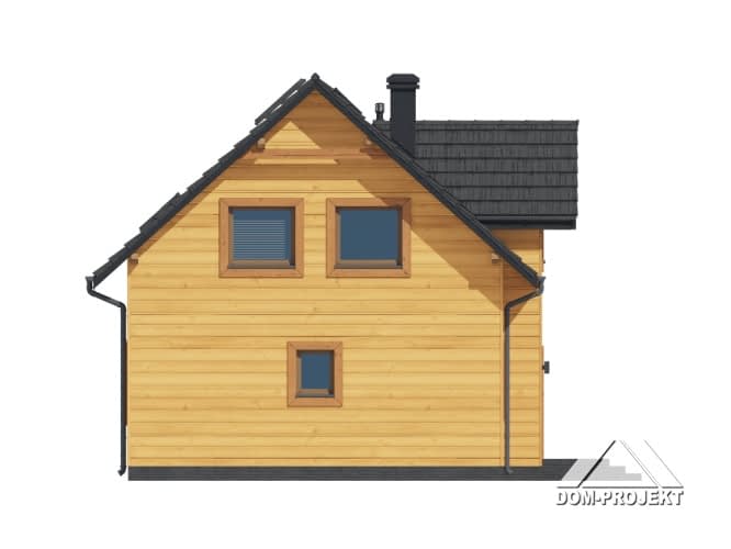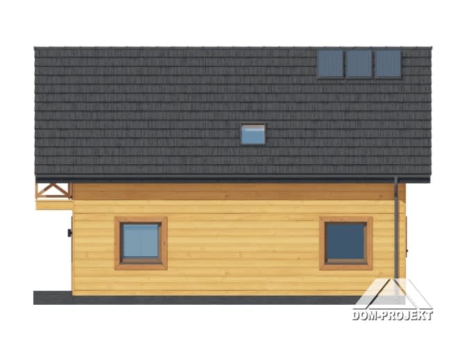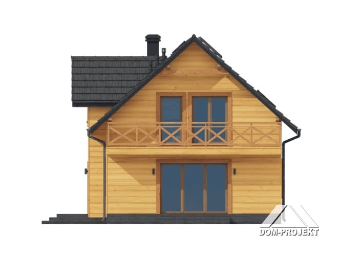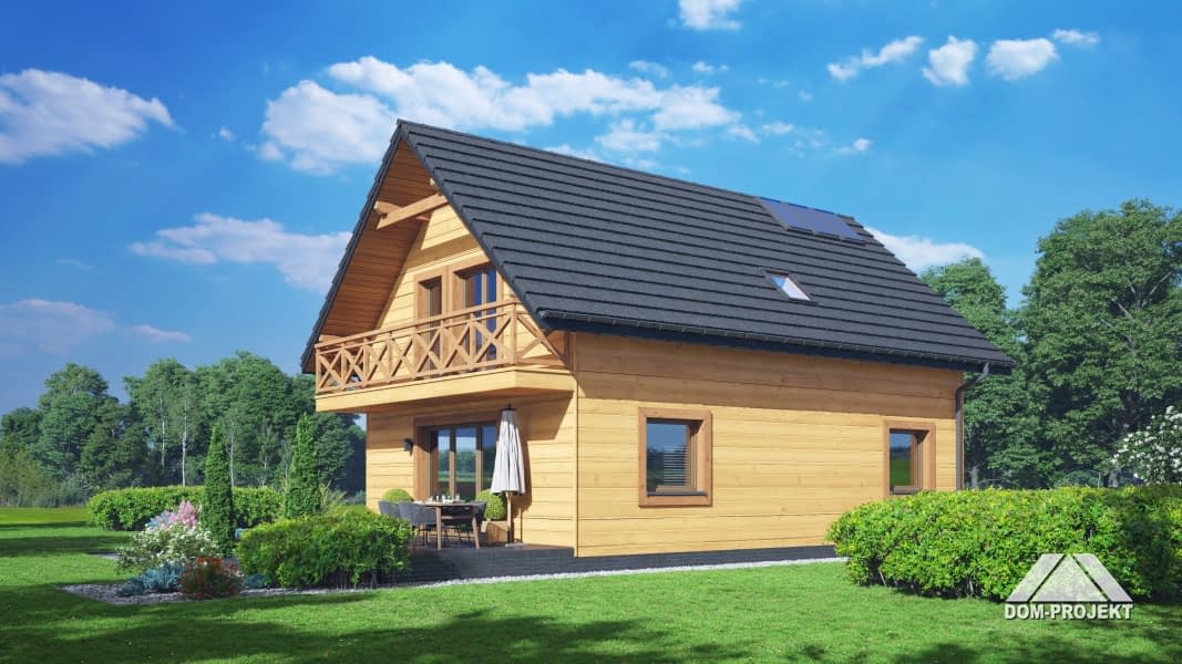 Dom w konstrukcji szkieletu drewnianego. Na parterze salon z aneksem kuchennym oraz wyjściem na taras. Pokój do pracy, łazienka, kotłownia, komunikacja, wiatrołap. Na poddaszu cztery pokoje, łazienka, komunikacja oraz balkon dostępny z dwóch pokoi. Zwarta bryła budynku oraz dach dwuspadowy sprzyjają szybkiej i taniej budowie oraz niskim kosztom eksploatacji.Rzuty