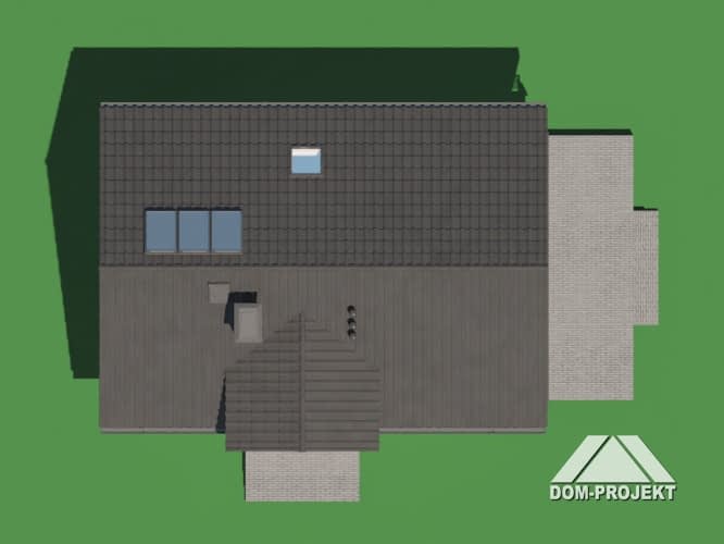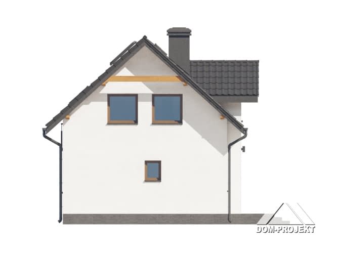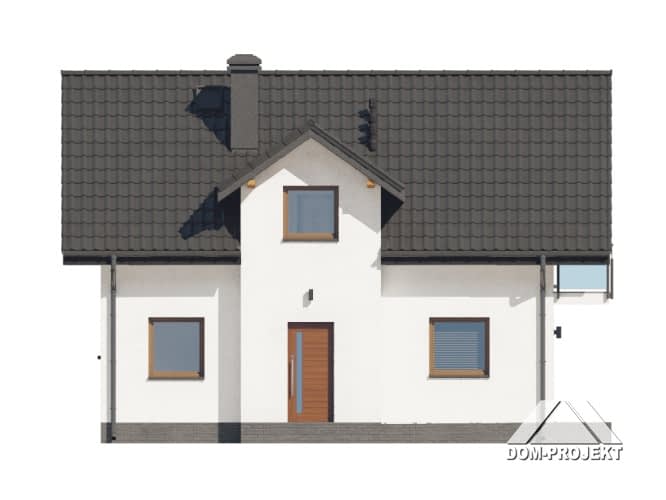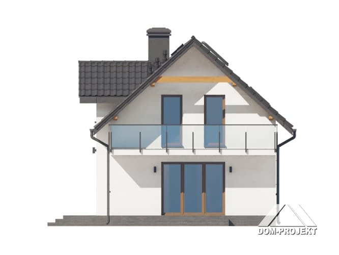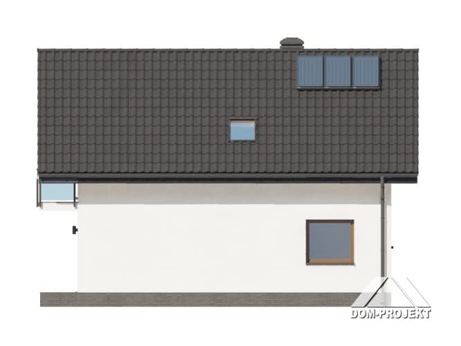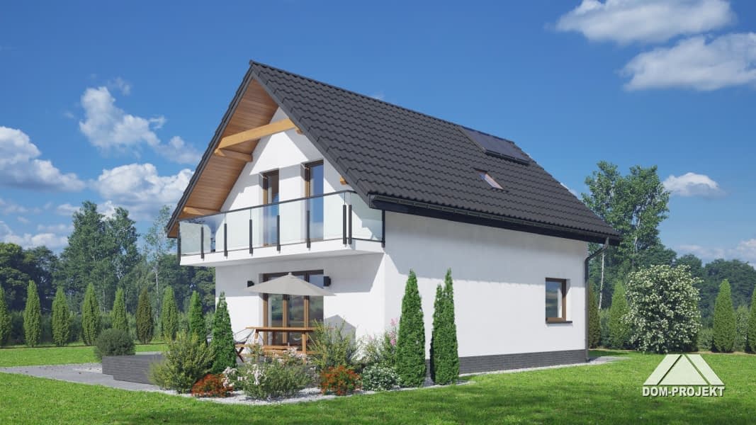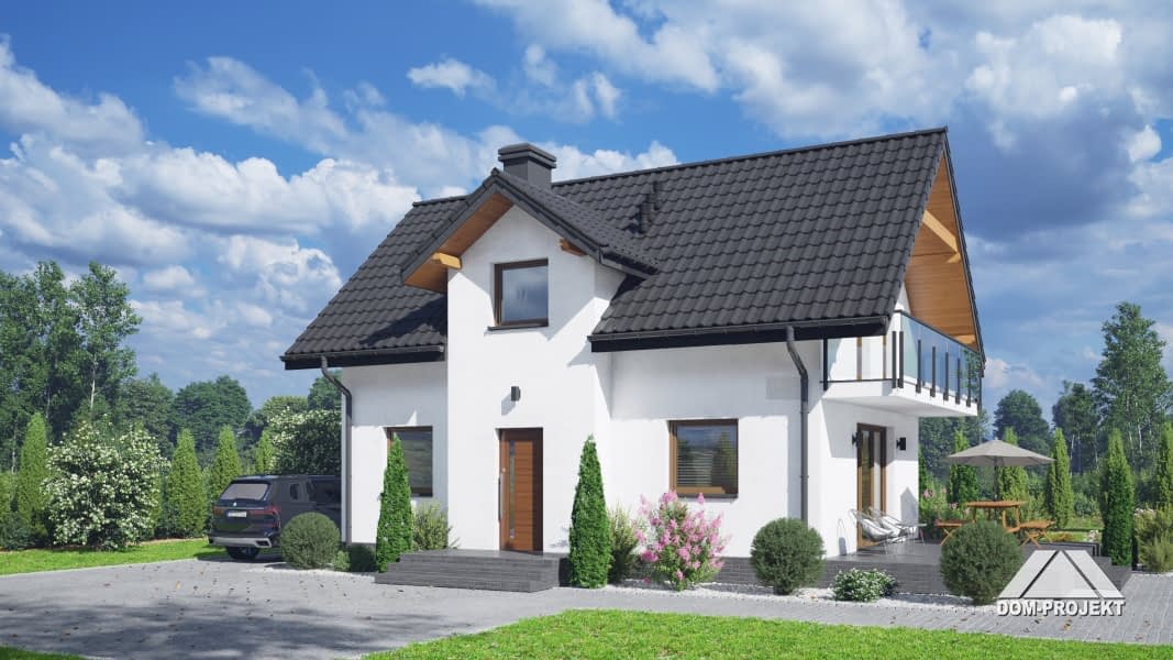 Dom z poddaszem użytkowym. Na parterze salon z aneksem kuchennym, wyjściem na taras i schodami na poddasze. Pokój do pracy, wc, kotłownia, wiatrołap. Na poddaszu trzy pokoje, łazienka, komunikacja oraz balkon dostępny z dwóch pokoi. Zwarta bryła budynku oraz dach dwuspadowy sprzyjają szybkiej i taniej budowie oraz niskim kosztom eksploatacji.Rzuty
