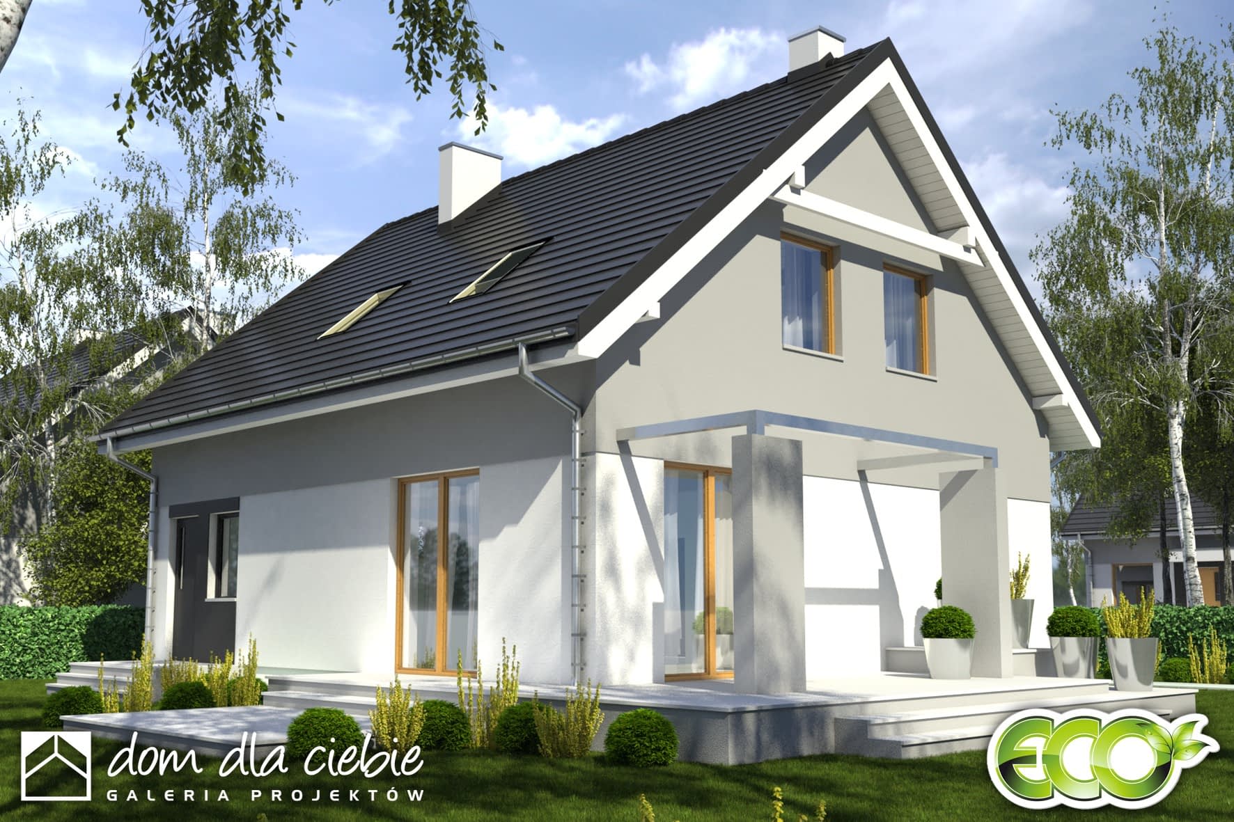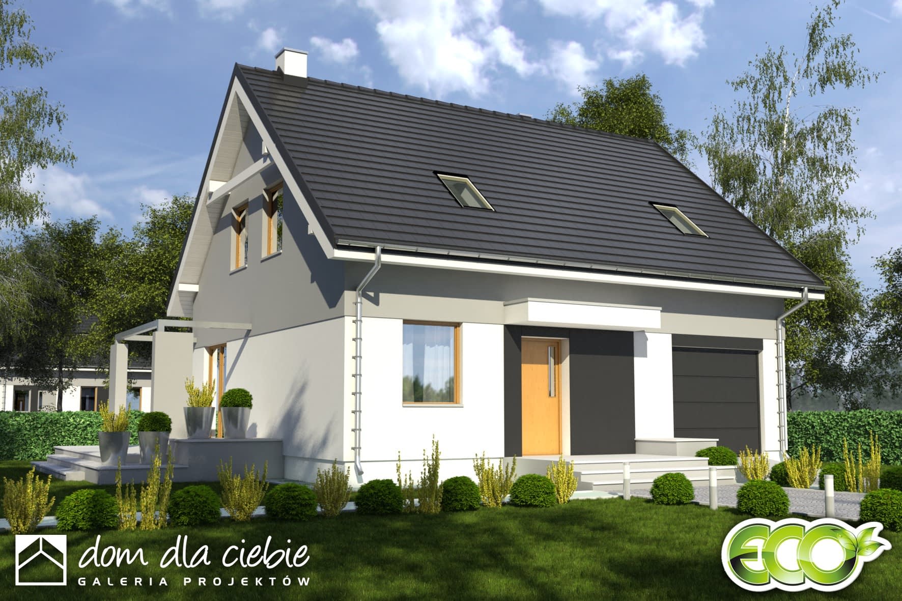 Projekt Monika II to prosty konstrukcyjnie, atrakcyjny, niewielki dom z poddaszem użytkowym dla 4-osobowej rodziny.