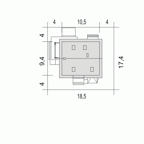 - Minimalne wymiary działki17.4 x 18.5m