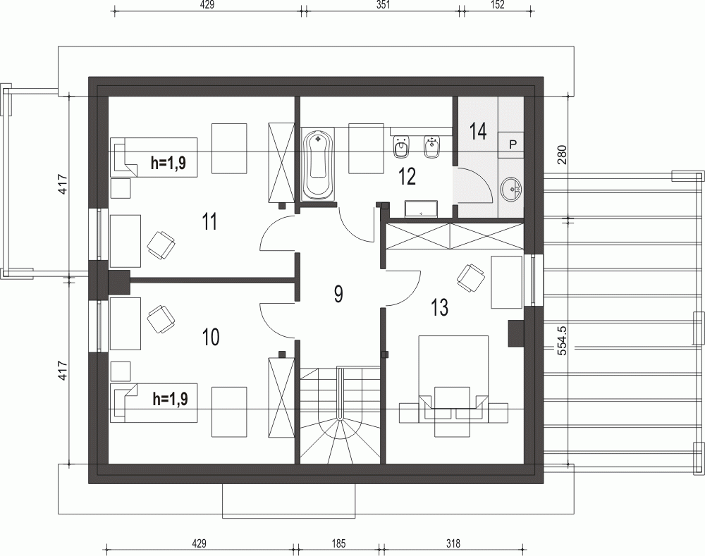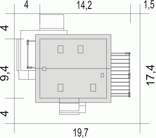 - Szerokość domu14.2 m
