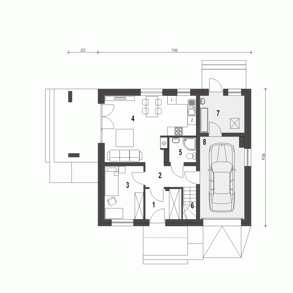 Monika to nieduży i prosty w budowie dom dla 4-osobowej rodziny. Posiada wbudowany garaż i kotłownię na paliwo stałe.