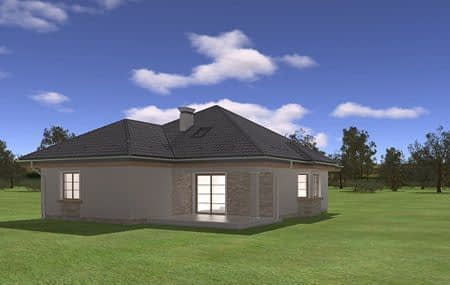 Projekt domu Natalia 4 to wersja wariantowa popularnego projektu Natalia. Tym razem dom jest węższy, przystosowany do wąskiej działki. Budynek jest parterowy, przekryty kopertowym dachem z dwiema dobudowanymi częściami - garażem od frontu i sypialniami od strony ogrodowej. Nad parterem znajduje się strych, który można w drugim etapie zaadaptować jako poddasze użytkowe. Architektura zewnętrzna domku Natalia 4 jest bezpretensjonalna. Łączy w sobie tradycyjną formę polskiego "dachowca" z nowoczesnym detalem i materiałami. Całość jest lekka i zachowuje ludzką skalę. Dom doskonale wtapia się w otoczenie i zachowuje kontakt z ogrodem. Wewnątrz zaprojektowano jednoprzestrzenną część dzienną - z salonem, holem, otwartą dużą kuchnią, część nocną - z trzema sypialniami i łazienką, oraz część gospodarczą - z garażem i kotłownią. Pokój dzienny z aneksem jadalnym z wykuszem, narożnym kominkiem, wyeksponowaną ścianą telewizyjną, czy szerokimi szklanymi drzwiami na częściowo zadaszony taras i ogród, stanowi łącznik wszystkich pomieszczeń i główne miejsce życia domowników. Stąd przechodzimy do sypialni, czy na strych, który można zaadaptować na poddasze użytkowe. W pracowni MG Projekt można zamówić też wersję odbicia lustrzanego projektu domu Natalia 4, lub jedną z trzech pozostałych wersji: podstawowa (projekt domu Natalia), o najwiekszej powierzchni 180.49 m2 (projekt domu Natalia 2), komfortową z trzema sypialniami (projekt domu Natalia 3). Zapraszamy!