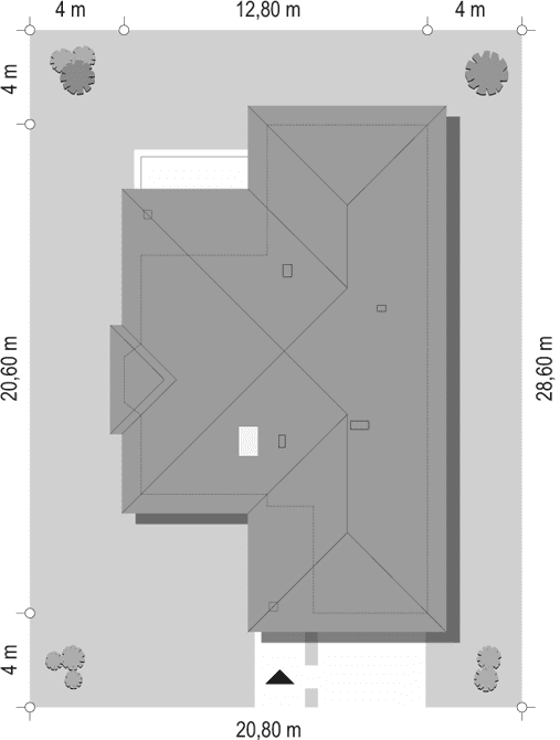 - Minimalne wymiary działki28.6 x 20.8m