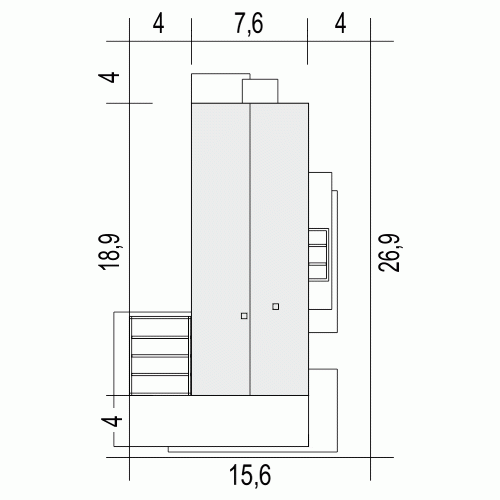 - Minimalne wymiary działki26.9 x 15.6m