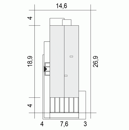- Minimalne wymiary działki26.9 x 14.6m