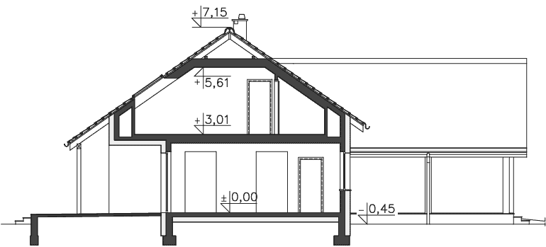 - Rozwiązania konstrukcyjno-materiałowe: ściany, strop/stropy, nadproża okienne i drzwiowe, wieńce, dach, schody na poddasze nieużytkowe, kominy i wentylacje, izolacje, powłoki zabezpieczające, posadzki i podłogi, tynki i okładziny, stolarka okienna i drzwiowa, obróbki blacharskie, rynny i rury spustowe, taras i płyta wejściowa