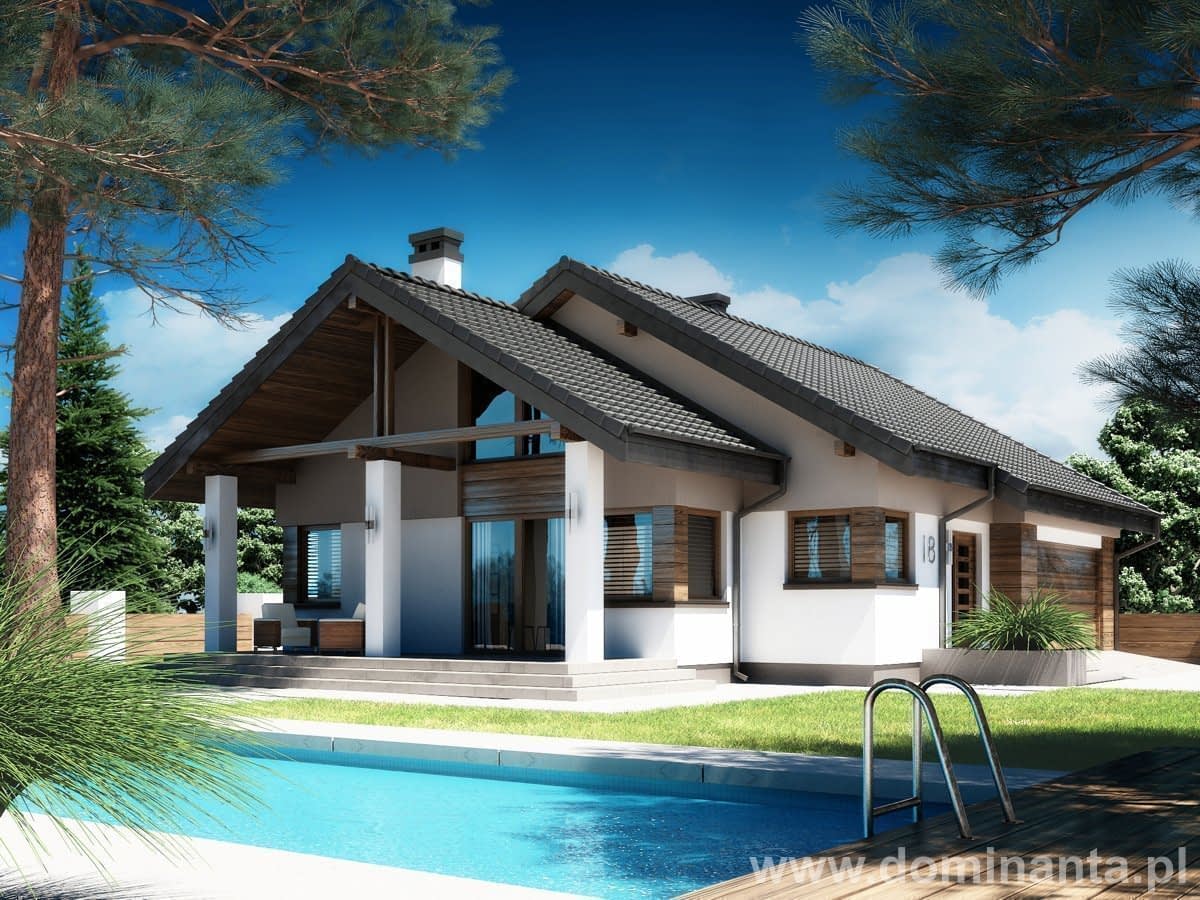 - niewielki i nowoczesny jednorodzinny dom parterowy