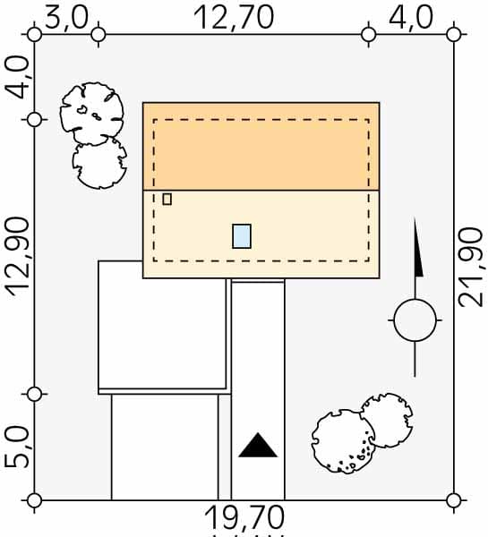 - Minimalne wymiary działki21.9 x 19.7m