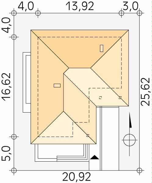 Neptun 5 dr-T to parterowy dom przeznaczony dla 4-osobowej rodziny. Układ funkcjonalny odznacza się wyraźnym podziałem na część dzienną, nocną oraz gospodarczą. Część dzienną domu stanowi przestronny salon z kominkiem, jadalnia z wyjściem na zadaszony taras oraz zamknięta kuchnia. W części nocnej zaprojektowano trzy wygodne sypialnie oraz rodzinną łazienkę. Do bryły domu przylega jednostanowiskowy garaż z kotłownią usytuowaną tuż za nim. Projekt idealnie sprawdzi się na działkach z wjazdem od południa.Konstrukcja