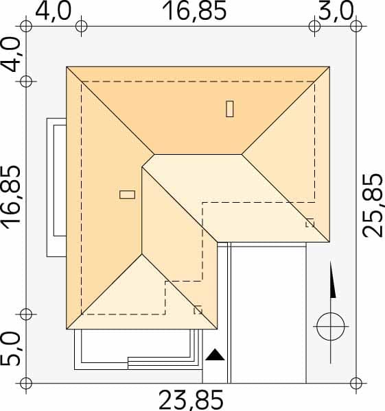 - Szerokość domu16.85 m