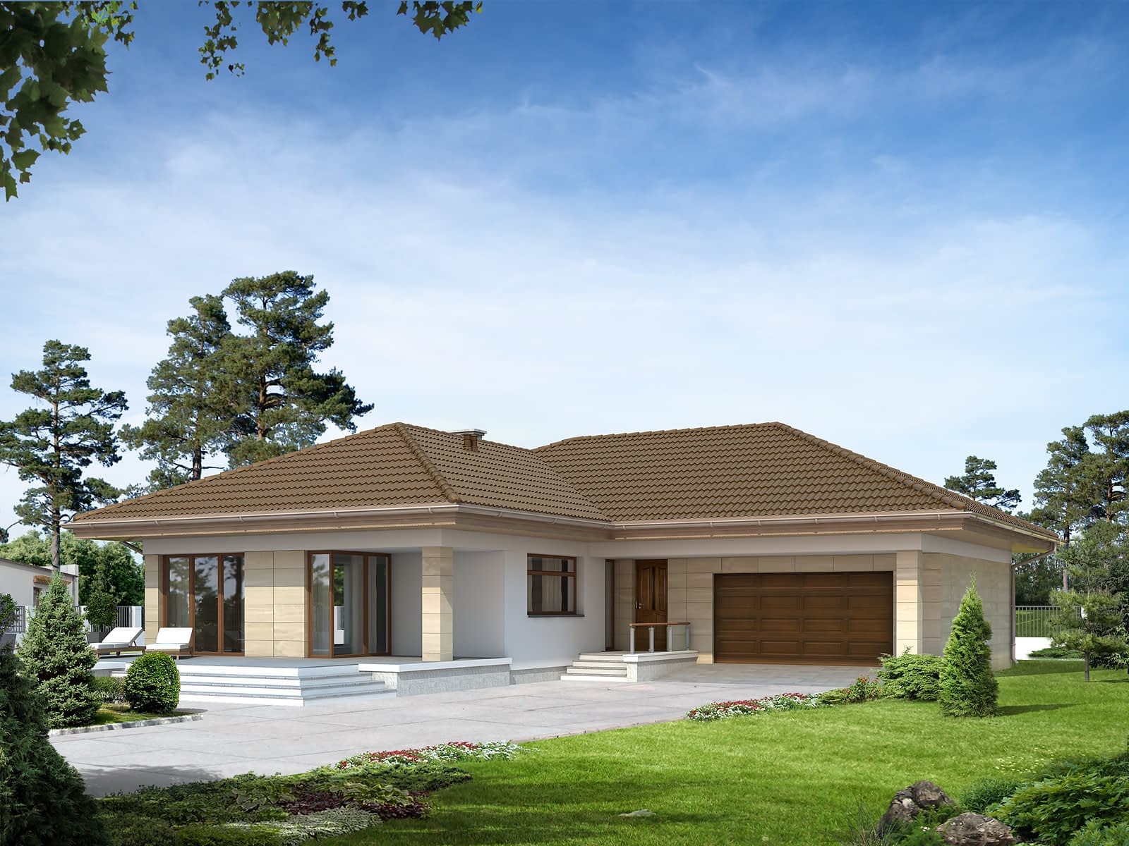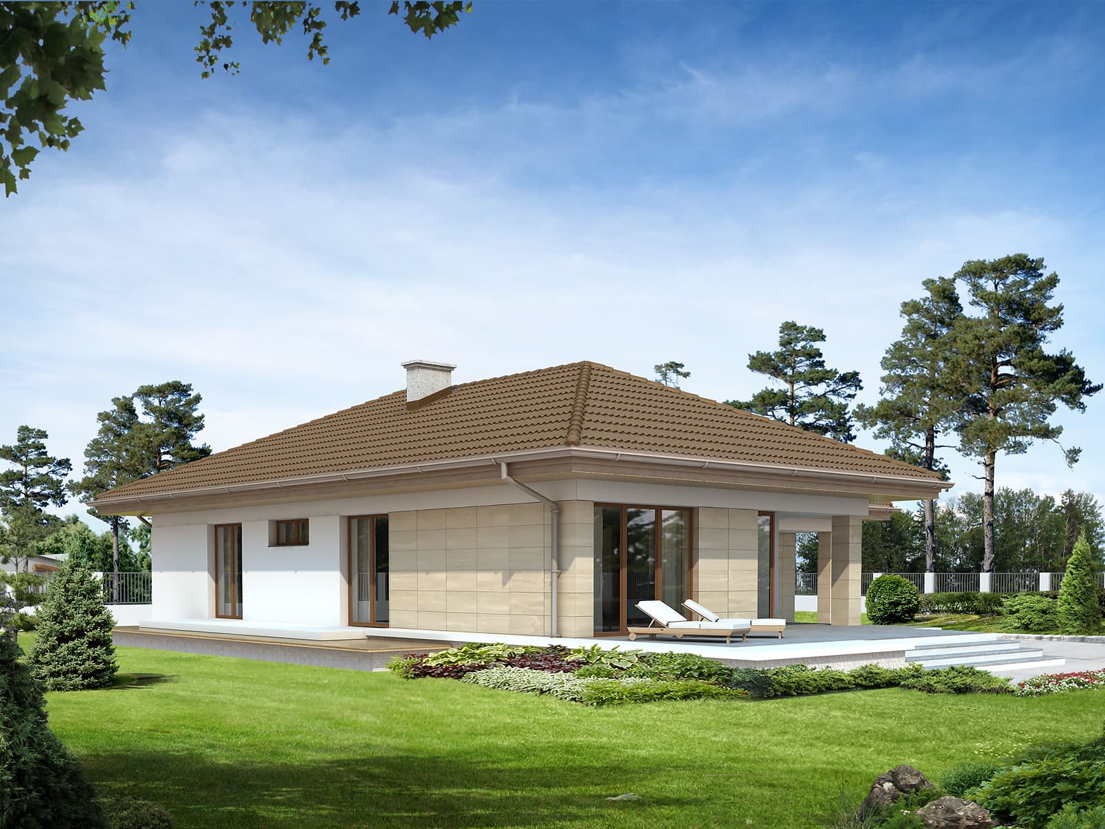 Jednorodzinny dom parterowy, niepodpiwniczony, przeznaczony dla 4-osobowej rodziny. Dom posiada wejście od strony południowej oraz częściowo zadaszony, przestronny taras. Wyraźny podział na część dzienną i nocną.Konstrukcja