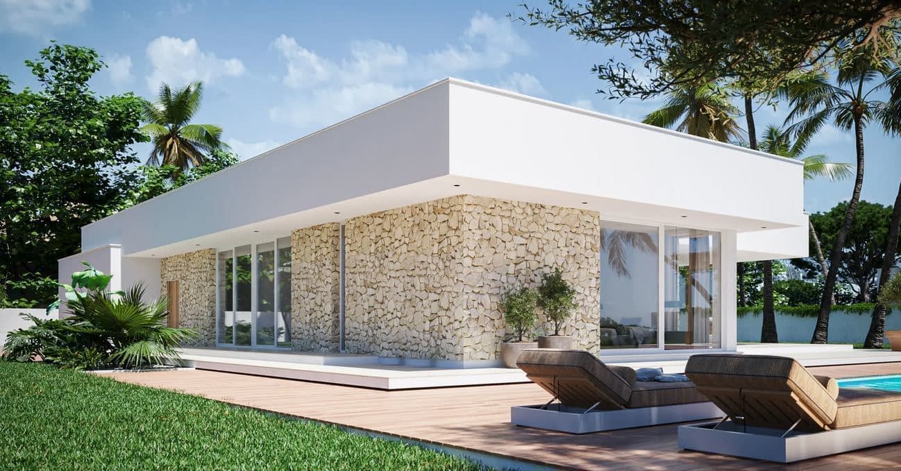 - Elewacja kamień elewacyjny (wapień) połączony z tynkiem silikonowym w kolorze białym