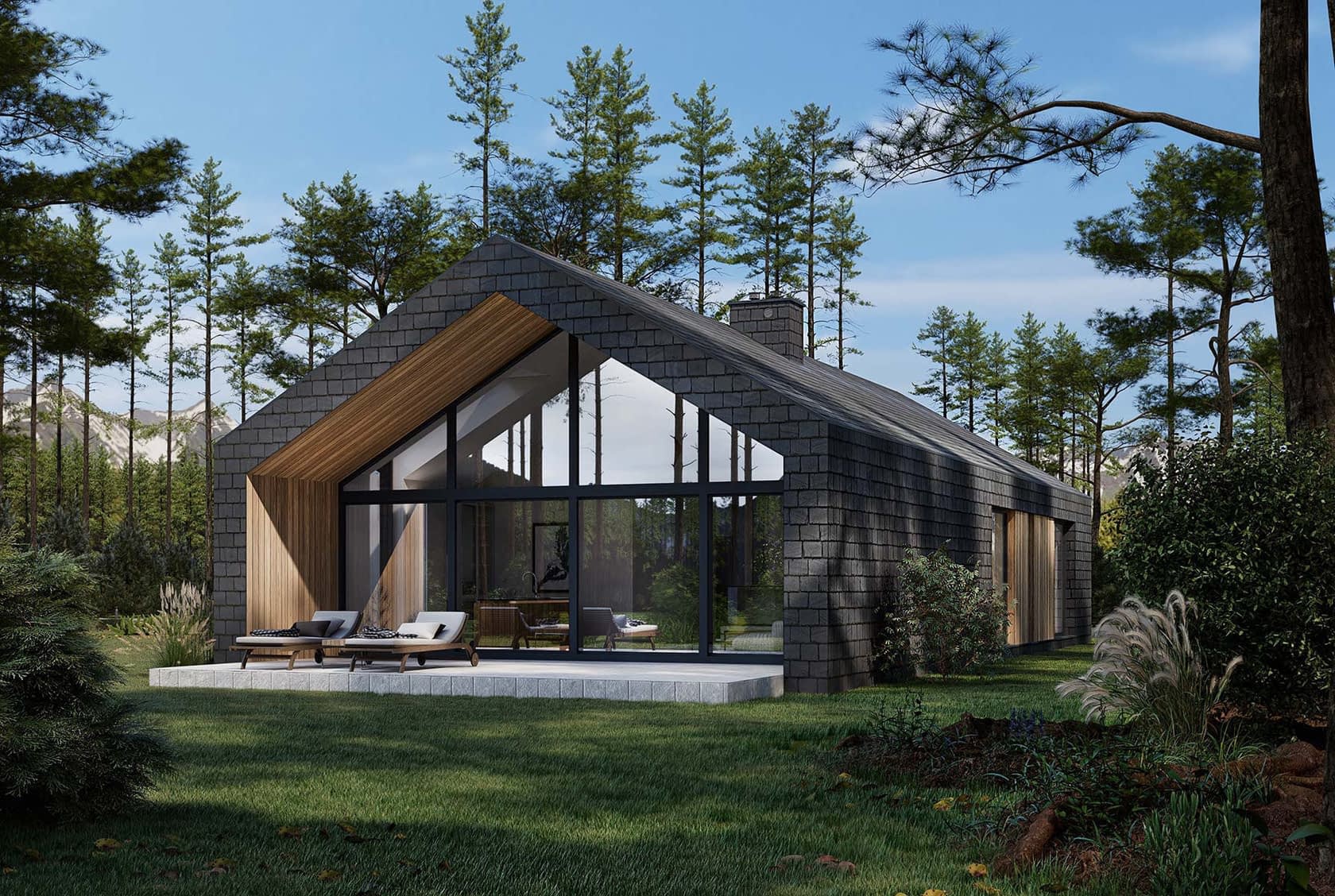 - Elewacja łupek naturalny połączony z drewnem elewacyjnym